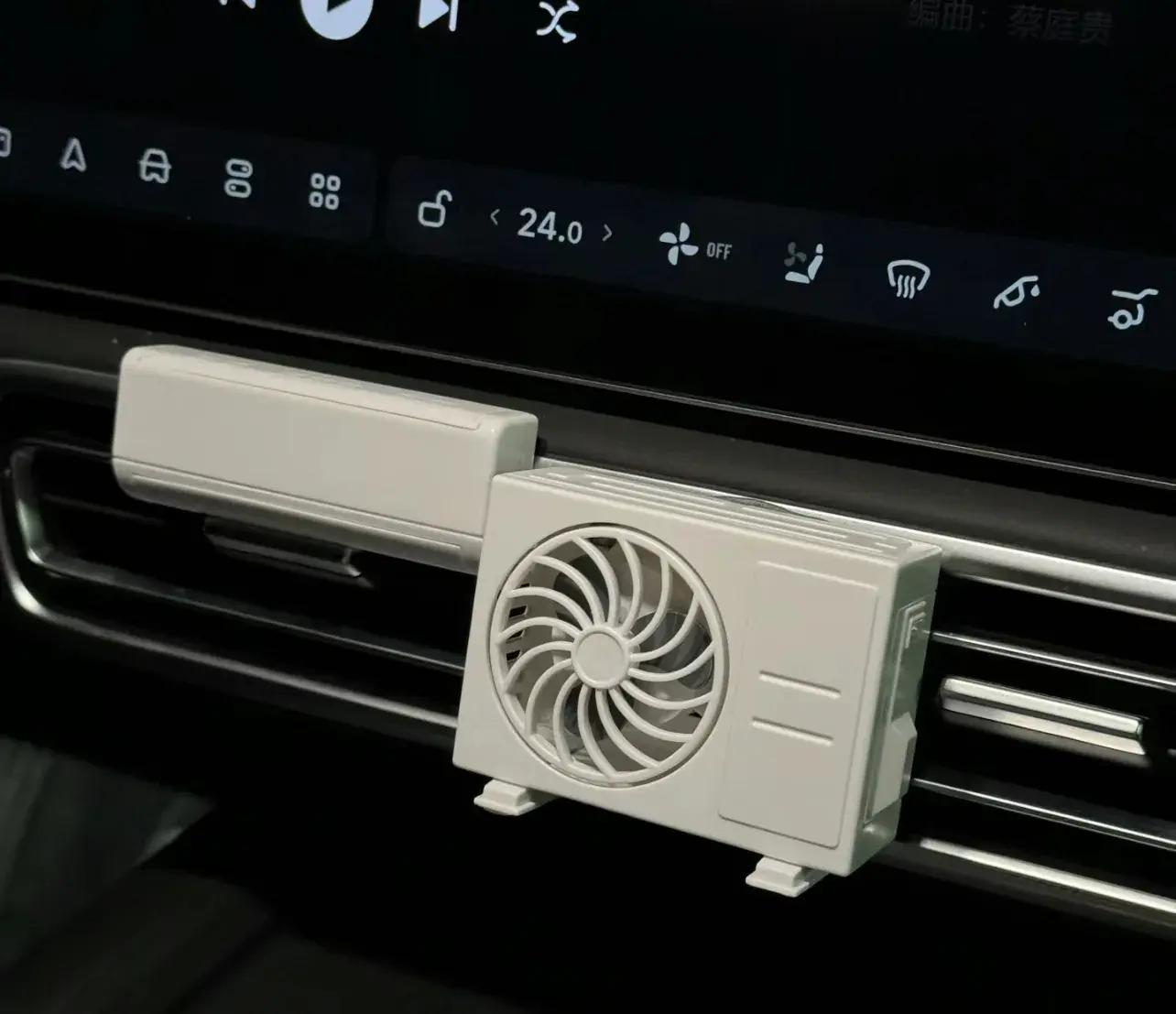 我給車上買了一套小空調,裝在車出風口處,因爲這事被我老公吐槽了半天。