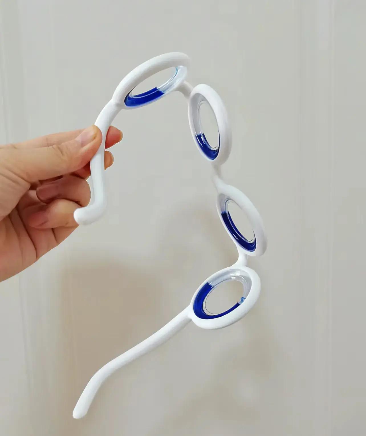 鏡身就是四個小圓圈,看着奇奇怪怪,戴上也一樣,跟小外星人一樣,本來以爲又要交智商稅,結果老媽卻說真的不暈了。