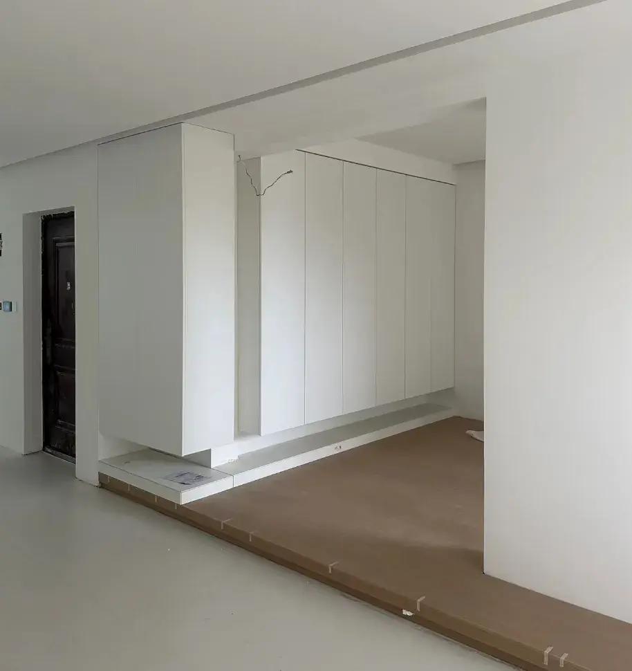 如圖屋主,做了極簡的一門到頂,奈何尺寸沒有量好,導致門蹭頂面了,這下還麻煩了,補救都難。