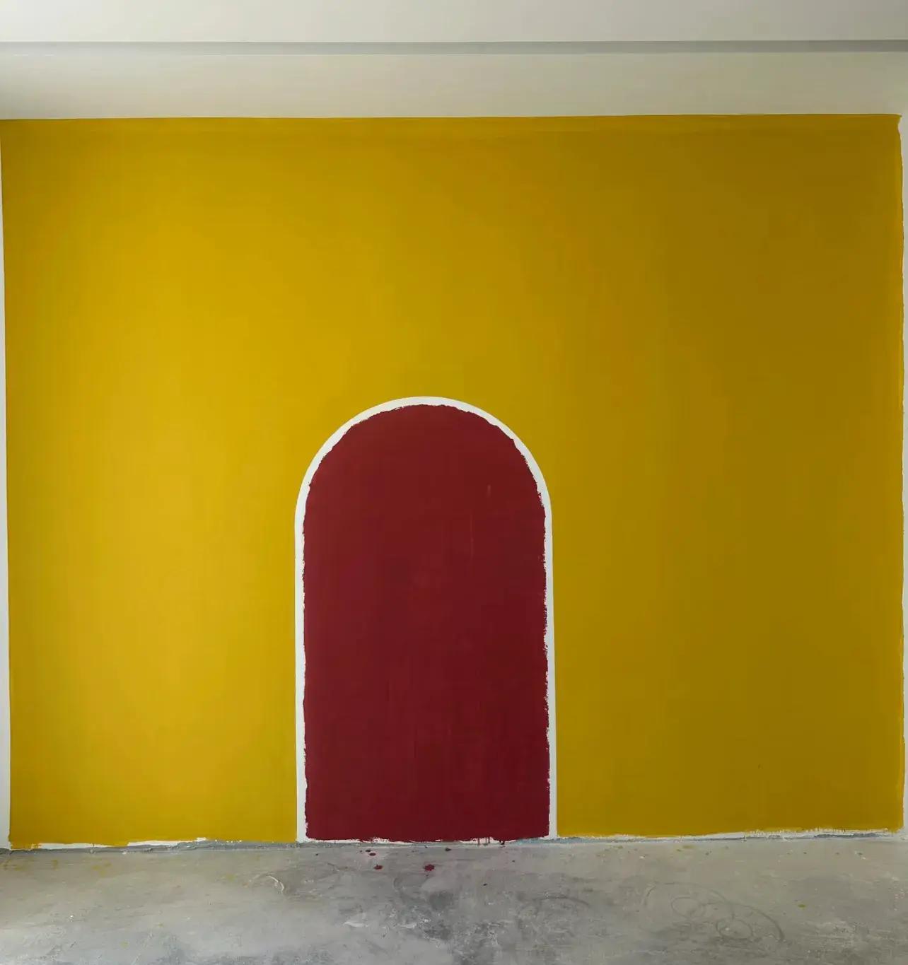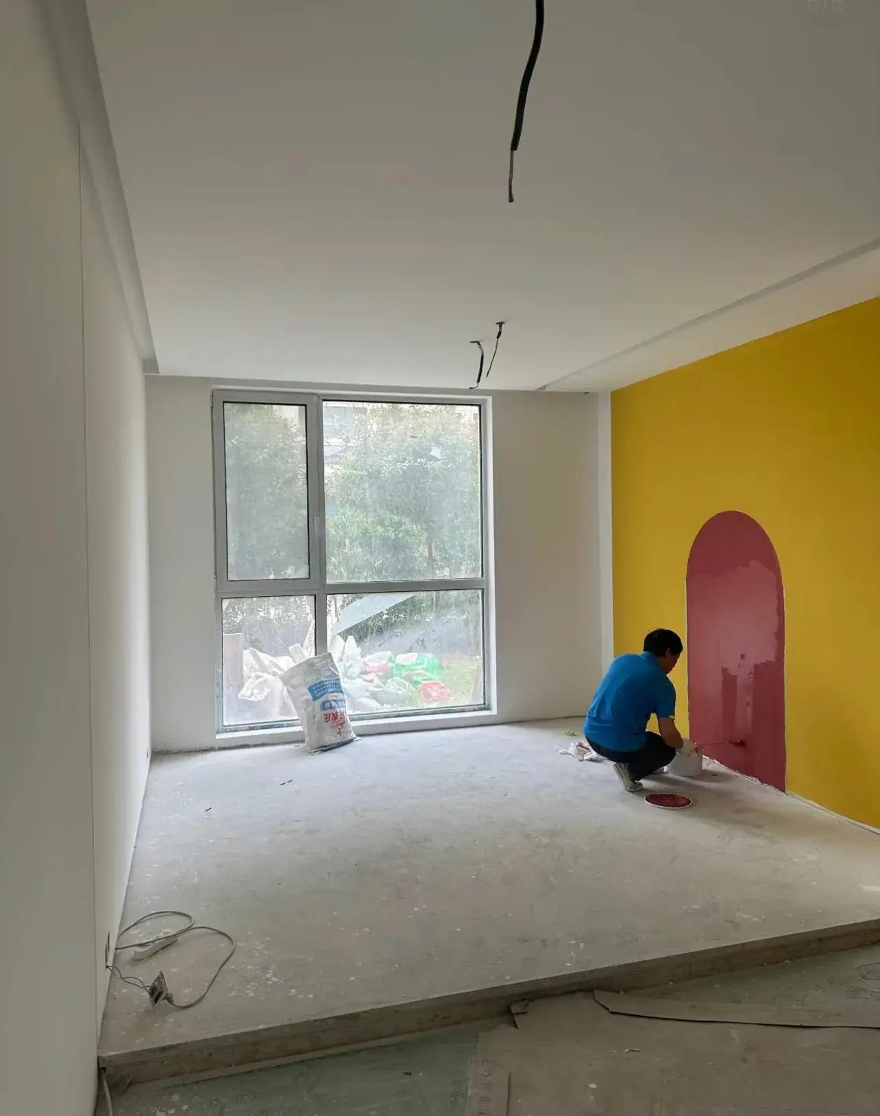 圖中,跟風做牆面拼色。