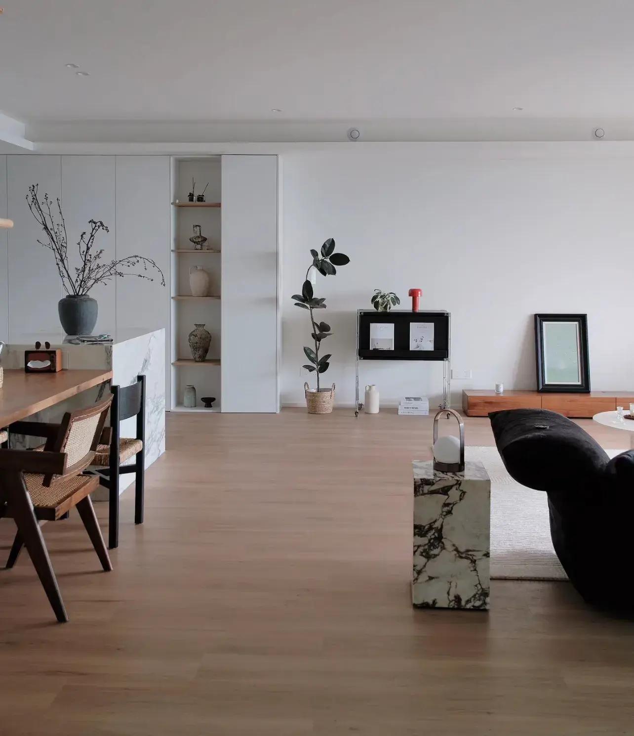 圖中裝修,算是真極簡了,視覺上看着很舒服,跟上面的簡單完全不是一回事,那這舒服怎麼來的?
