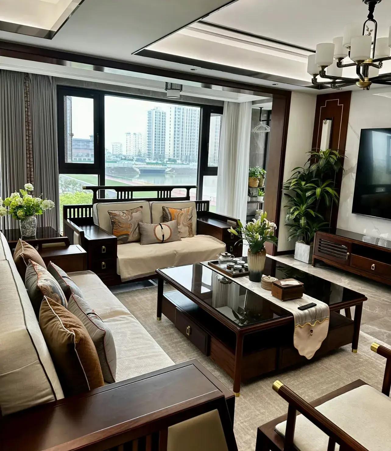 其二,考慮宋代傢俱,體量不算太大,主要凸出一個雅緻,很適合當下大多數住的房子,輔助的再去做一些屏風、盆栽、花瓶……中式點綴,不要搞設計師模版那套,裝飾線、大吊燈……出來的效果就會好很多。