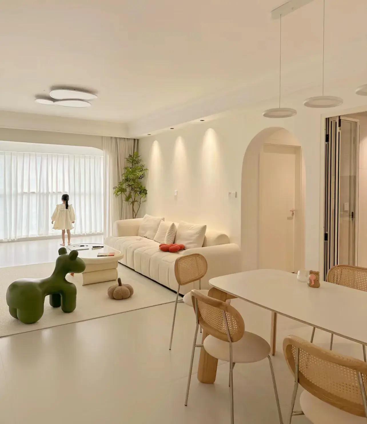 只要所有的硬裝、軟裝,都貫徹着三個點,裝出來的奶油風,一定很不錯,最後再來點綠色作爲跳色點綴,那清新的感覺也就有了。