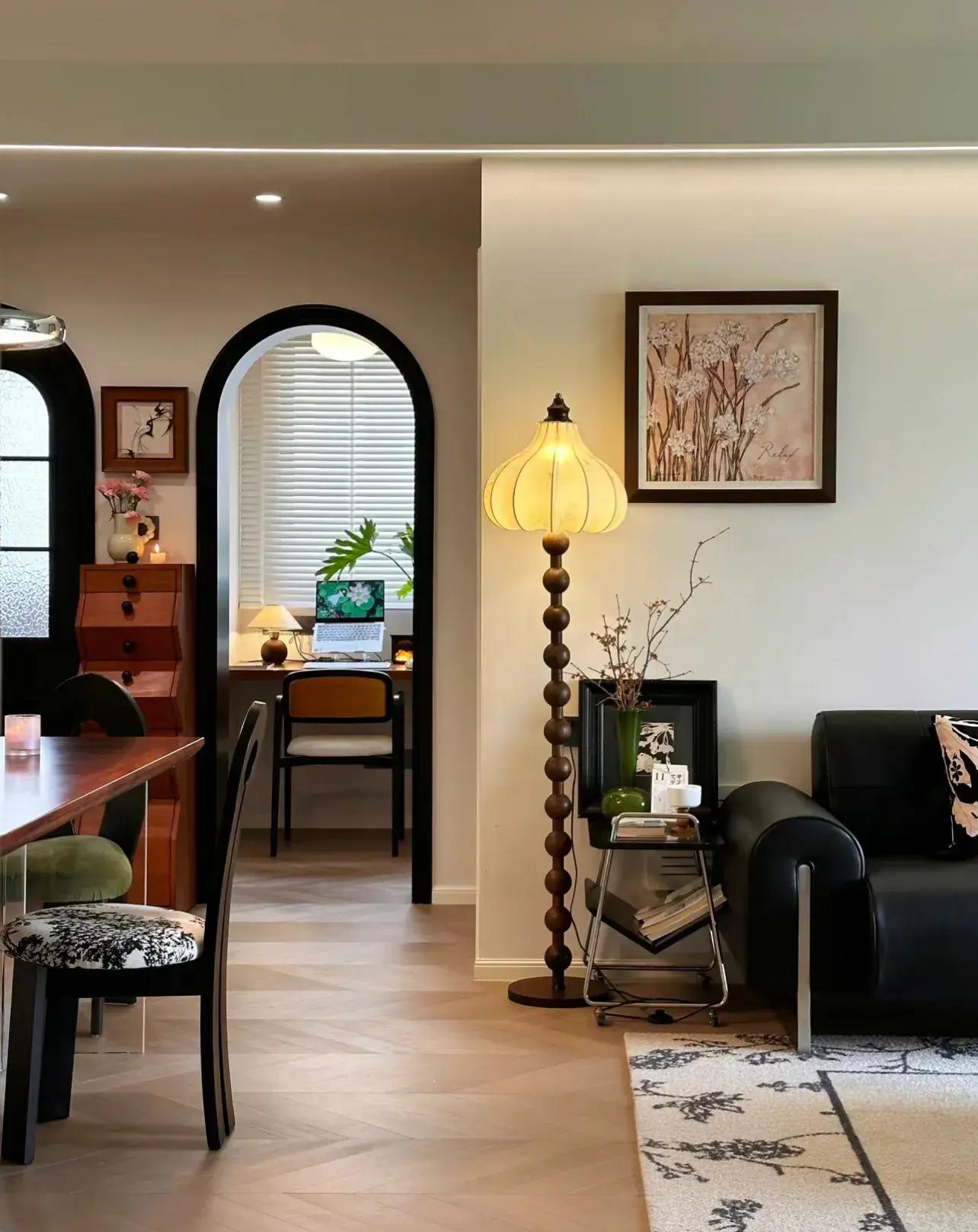 再此基礎上,再去添加一些有復古韻味的傢俱、燈具、掛畫就能營造出非常棒的中古風。