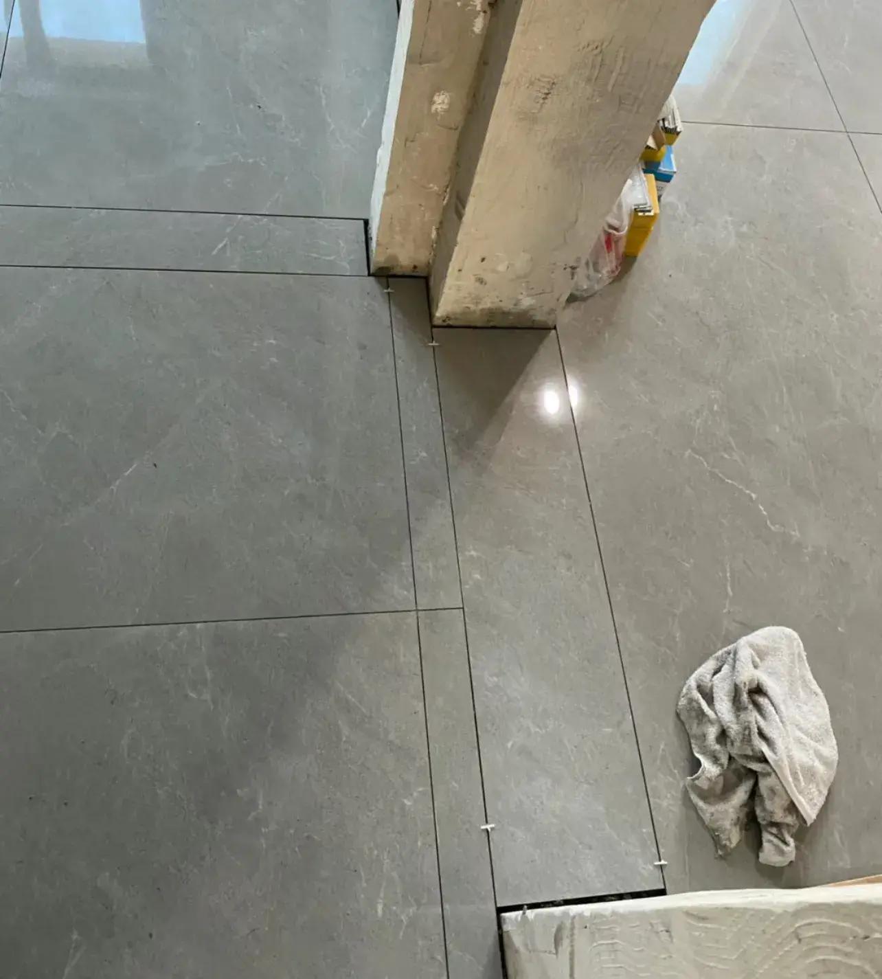 跟風,做全屋通鋪的,結果師傅不會,把買來的大瓷磚,裁的一溜一溜的,弄了個假通鋪!