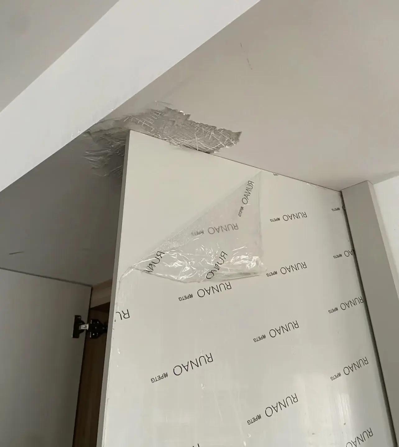 跟風給臥室做石膏線的,結果忘記了自家的櫃子是到頂的,然後櫃子的腦袋被削了!