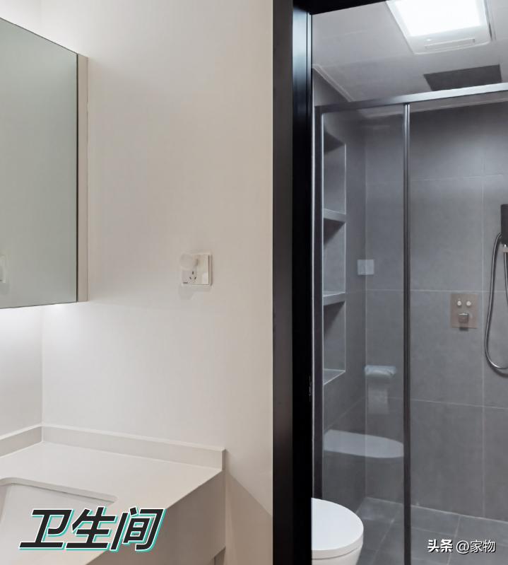 衛生間做了乾溼分離,將幹區融入到玄關區,改善了動線的擁擠狀況。幹區牆面刷上白色的防水漆,簡潔美觀。