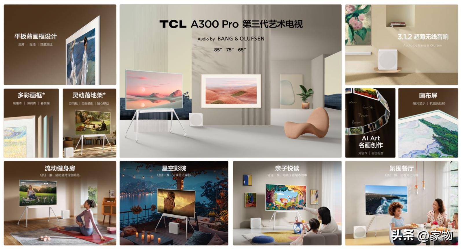 又或者讓A300系列將在這裏化身爲IMAX影廳,看一場好萊塢大片。A300 Pro電視搭配的230W超薄無線音響,是由TCL與世界奢華音響品牌 B&O聯合打造的。它既是阿斯頓·馬丁和寶馬的官方合作音響品牌,更是丹麥皇室御用音響品牌。可以讓整個空間,富有劇院級的聽覺享受。
