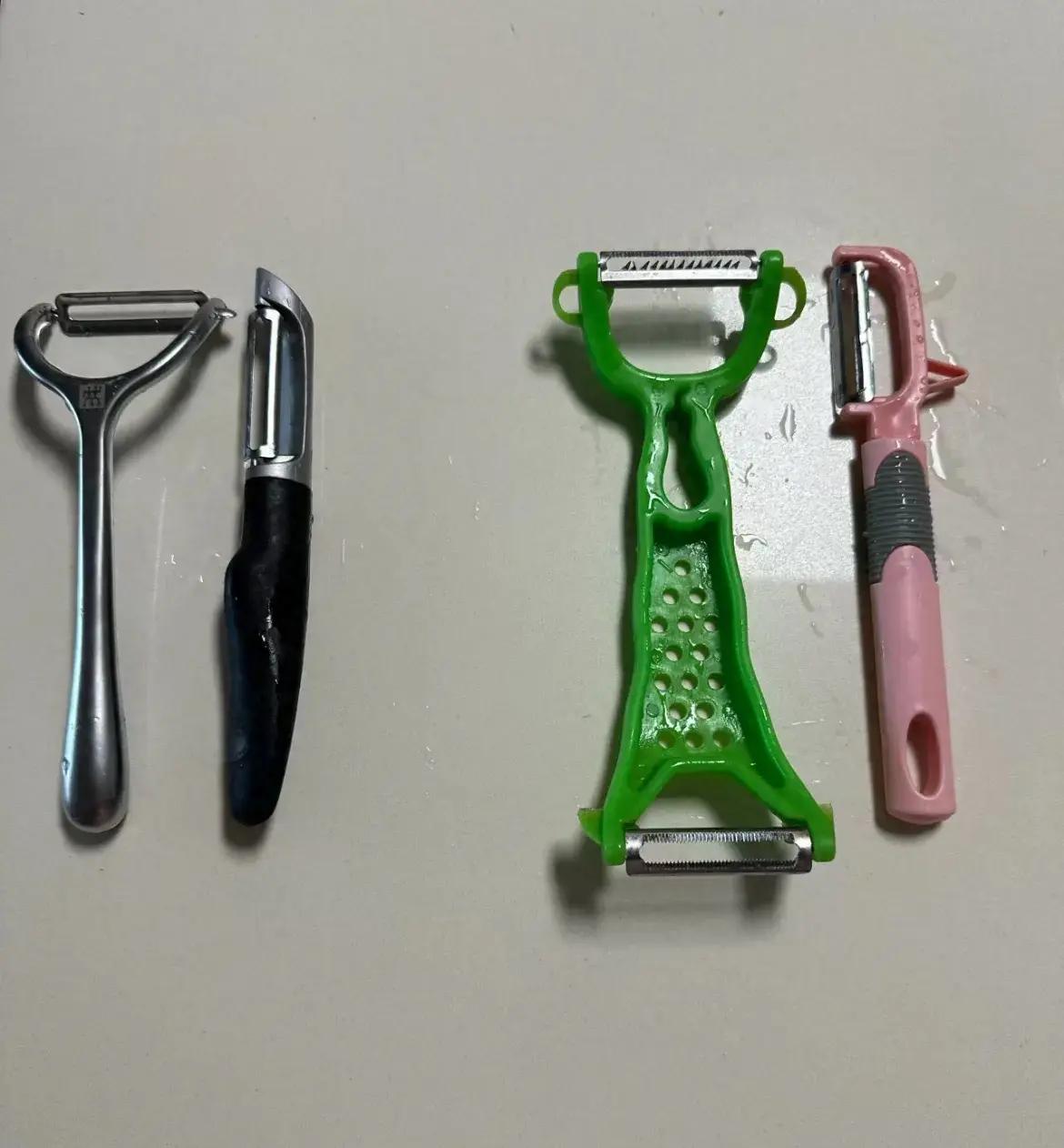 網友@小麻薯就吐槽,自己明明買的有削皮刀,並且很絲滑,老人卻以沒用習慣、找不到了爲由,添置了一把又一把,現在家裏有四把。