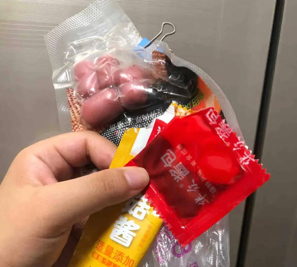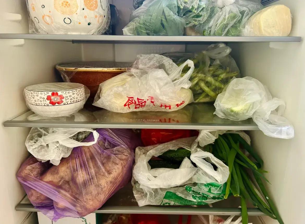 網友@艾戀,趁着婆婆回老家,趁機整理了下冰箱,剩一半的火腿腸黴了、倒一半剩下醬幹了、捂了很多層塑料袋的菜也壞了...