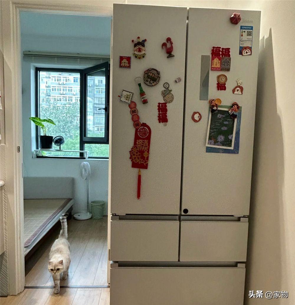 最後,畢竟廚房裏只有3.8㎡的面積,冰箱只好外移到水槽旁邊的角落裏,法式多門冰箱不僅尺寸剛好填滿角落,又可以收納下她一週的各種食材,真是戳綽綽有餘。