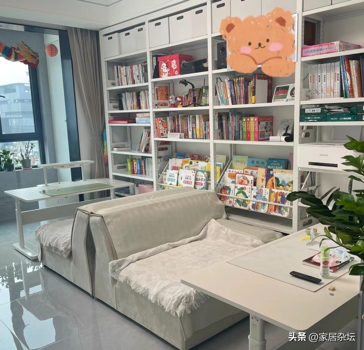 所以,我們就用書櫃書桌來代替傳統的茶几,營造更好的學習環境。