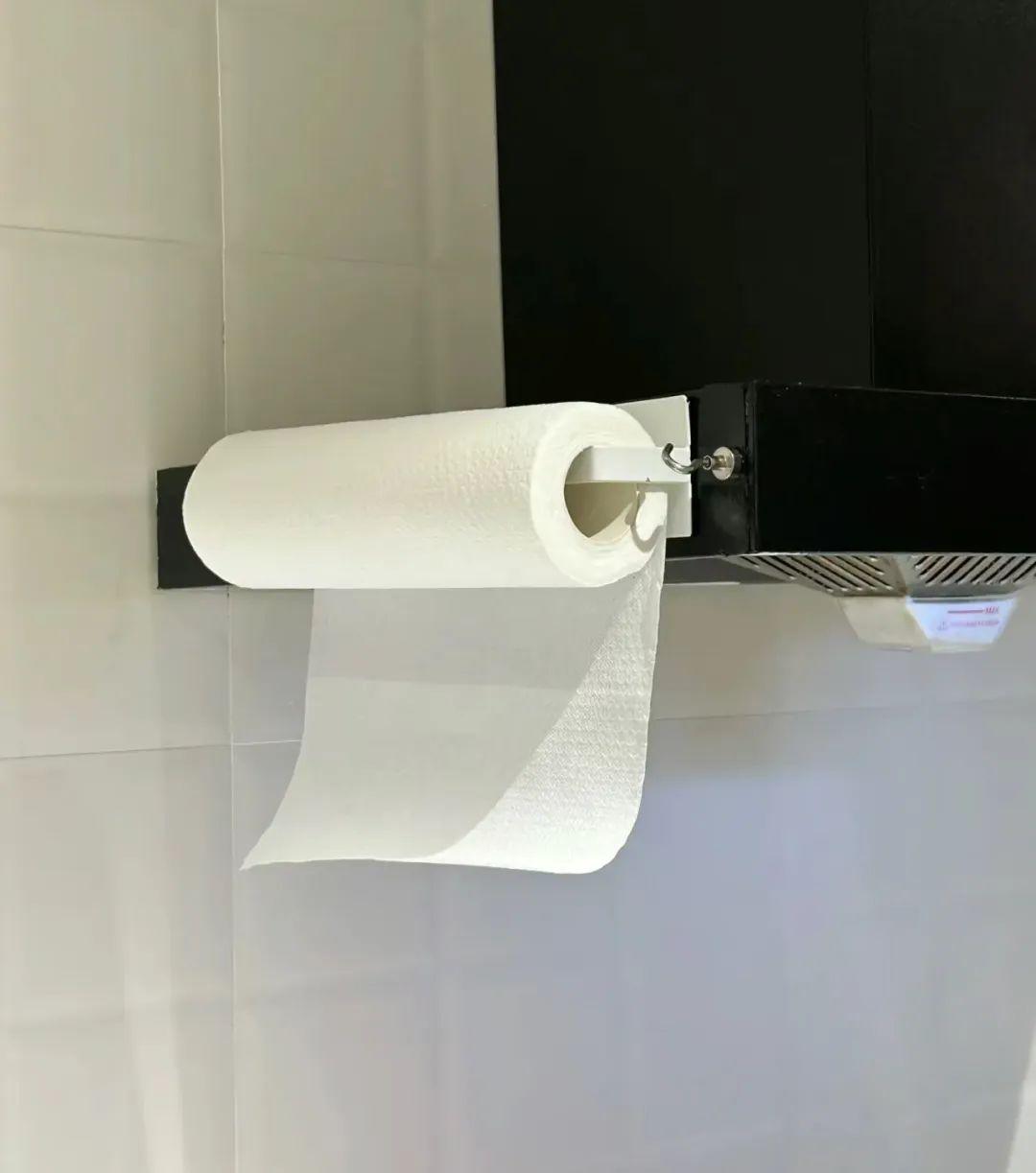 油煙機兩側都可以利用起來,左側再貼個捲紙架,放廚房紙巾。小廚房講究的是個見縫插針,不放過任何可以利用的角落。