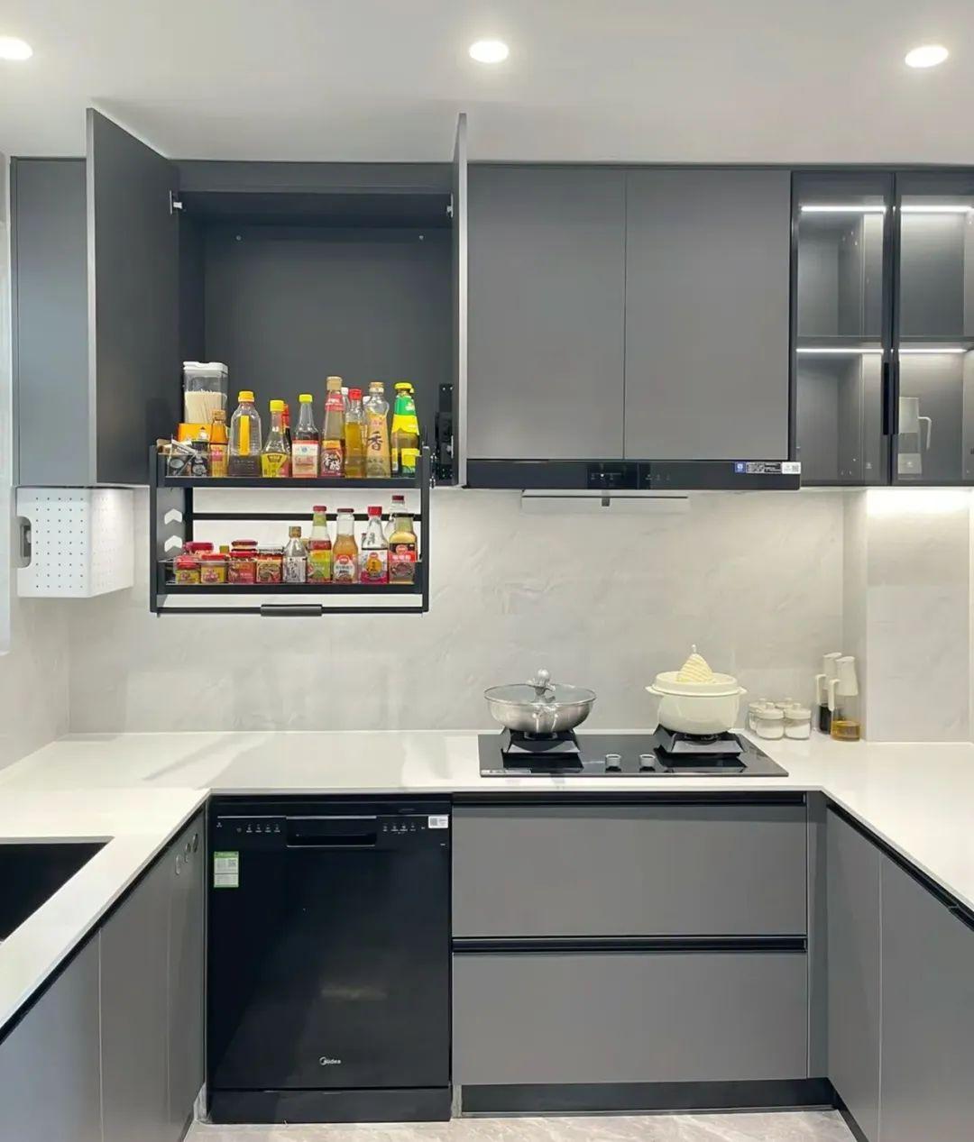 我家吊櫃難以清潔,主要是因爲門板沒選對,一定要避雷啞光磨砂門板這類,選用亮面門板,一門到頂,不留縫,也就不容易藏污納垢,容易清潔。
