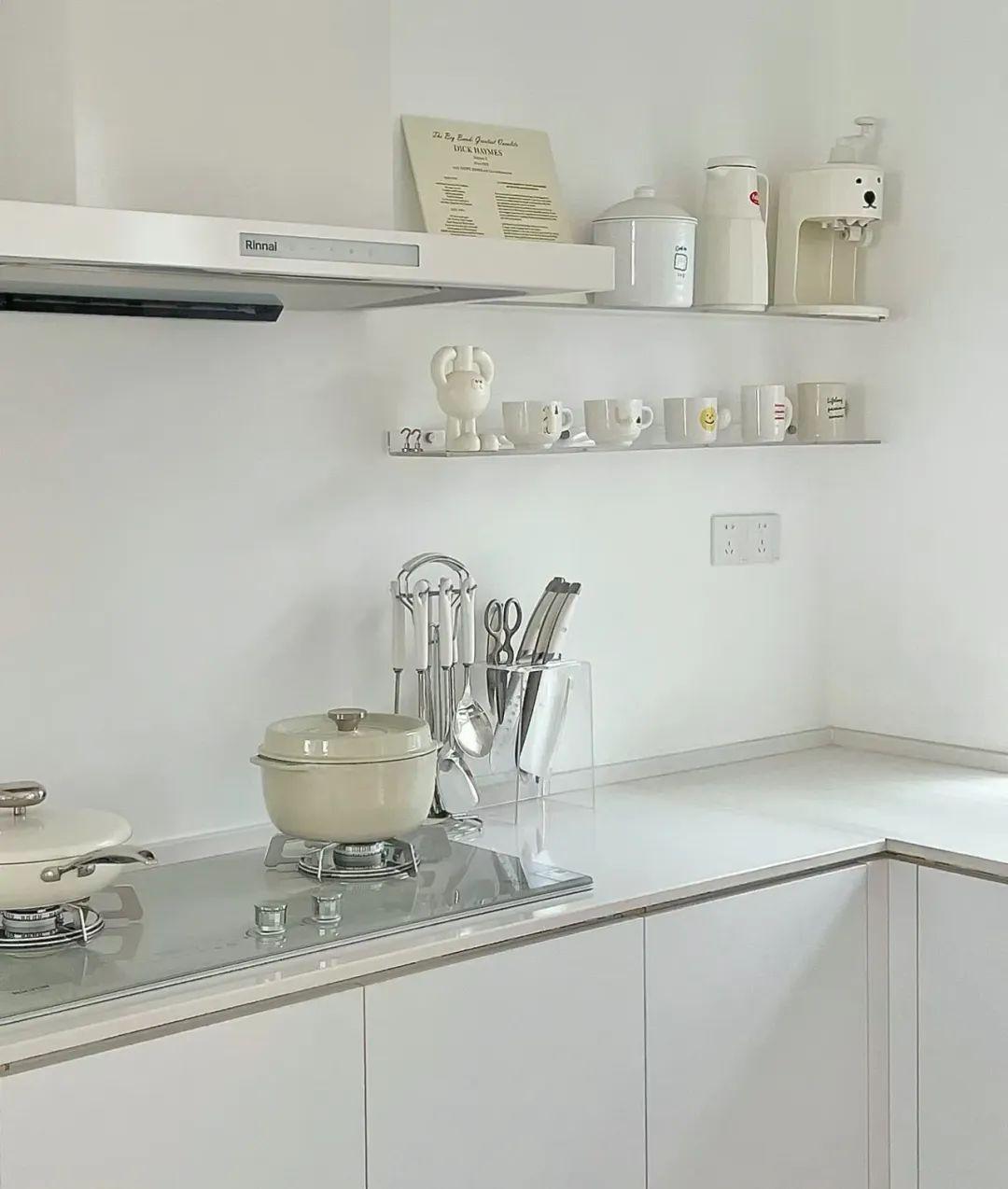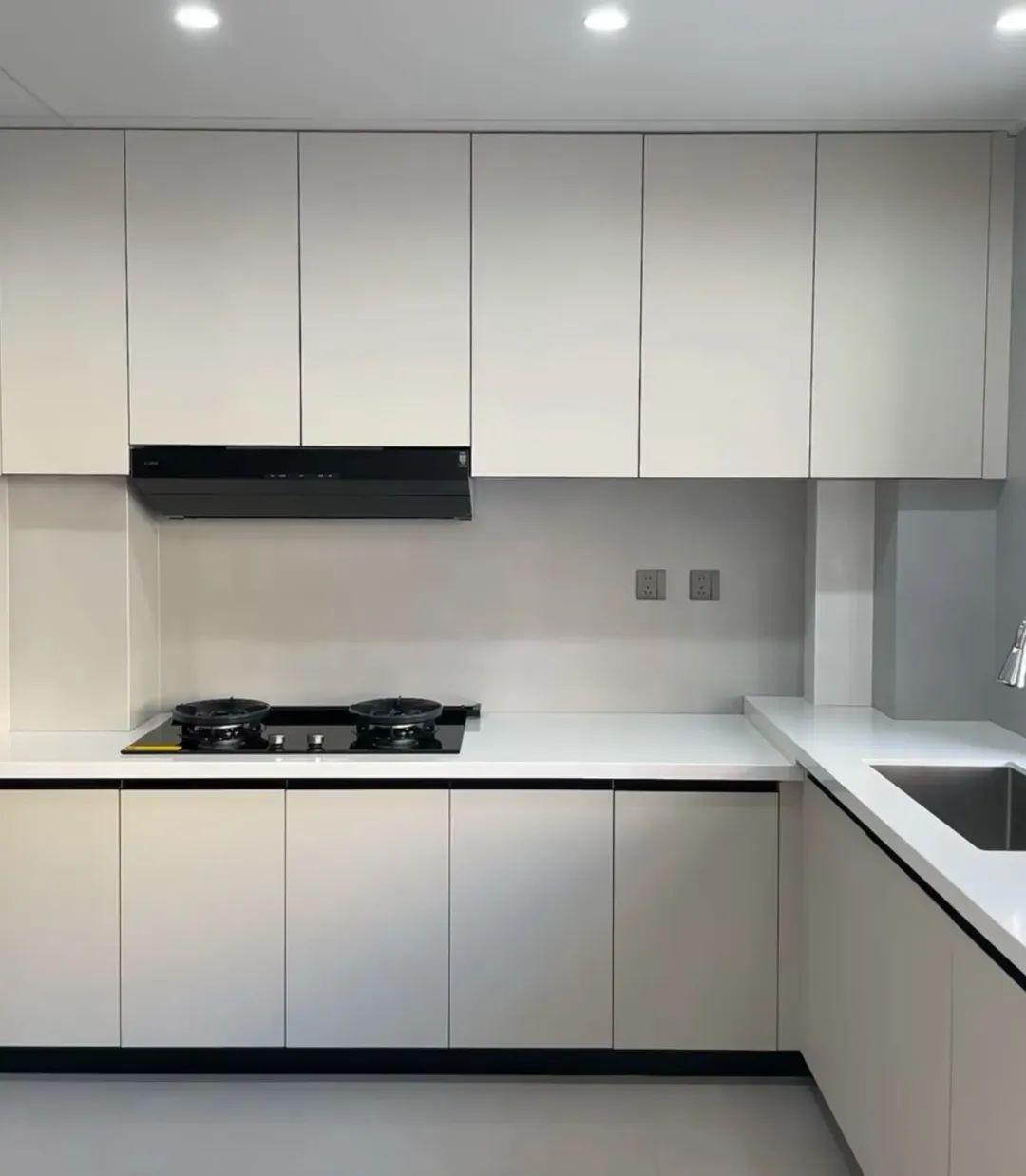 如果你多去幾家參觀裝修,就會發現,大多數小戶型的廚房裝修風格基本固定,淺色系吊櫃和櫥櫃,配極簡風門板和把手。