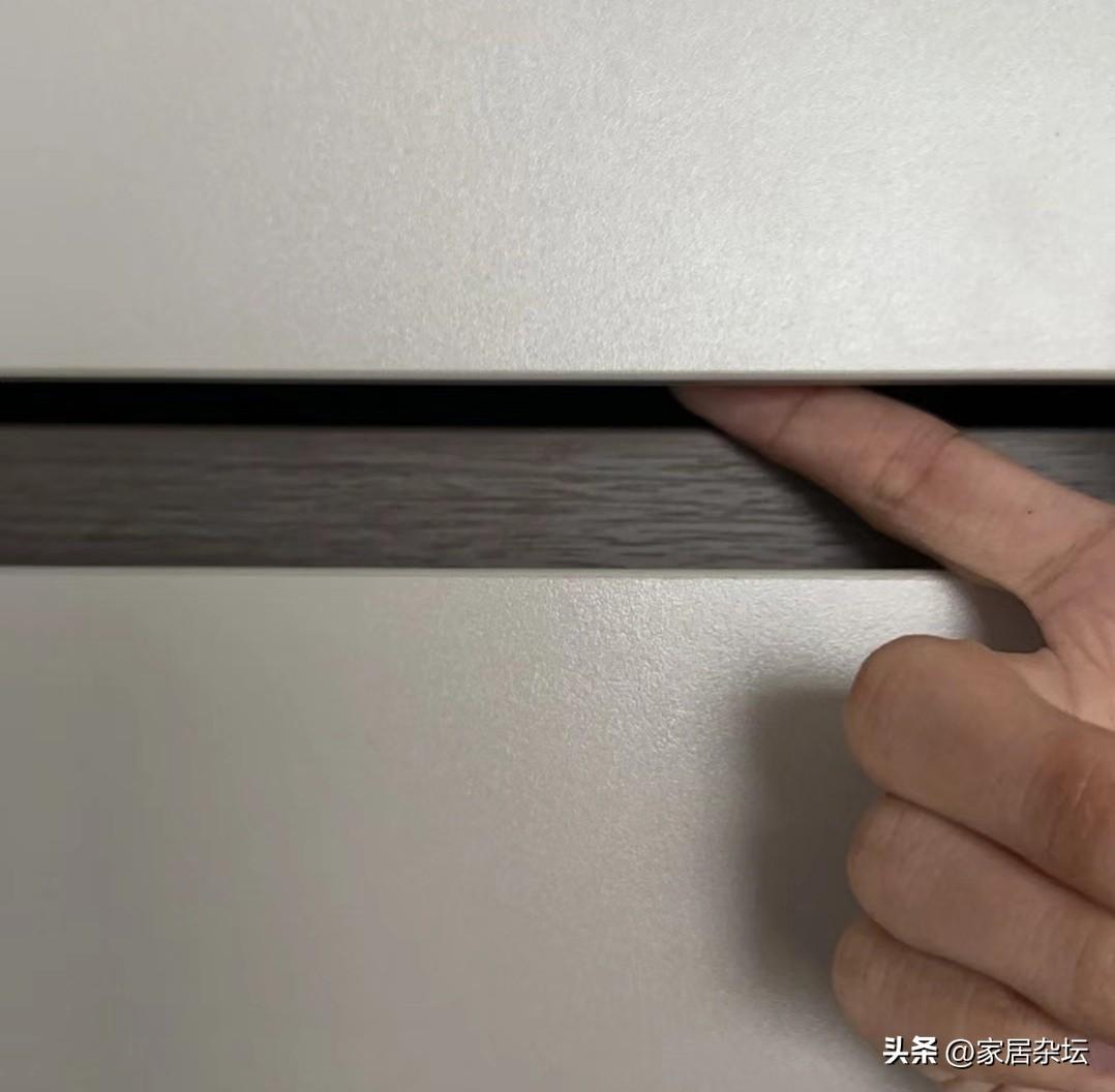 還有一種情況,就是錯縫。留了溝槽,但是兩個櫃子之間已經出現了縫隙差,非常難看。