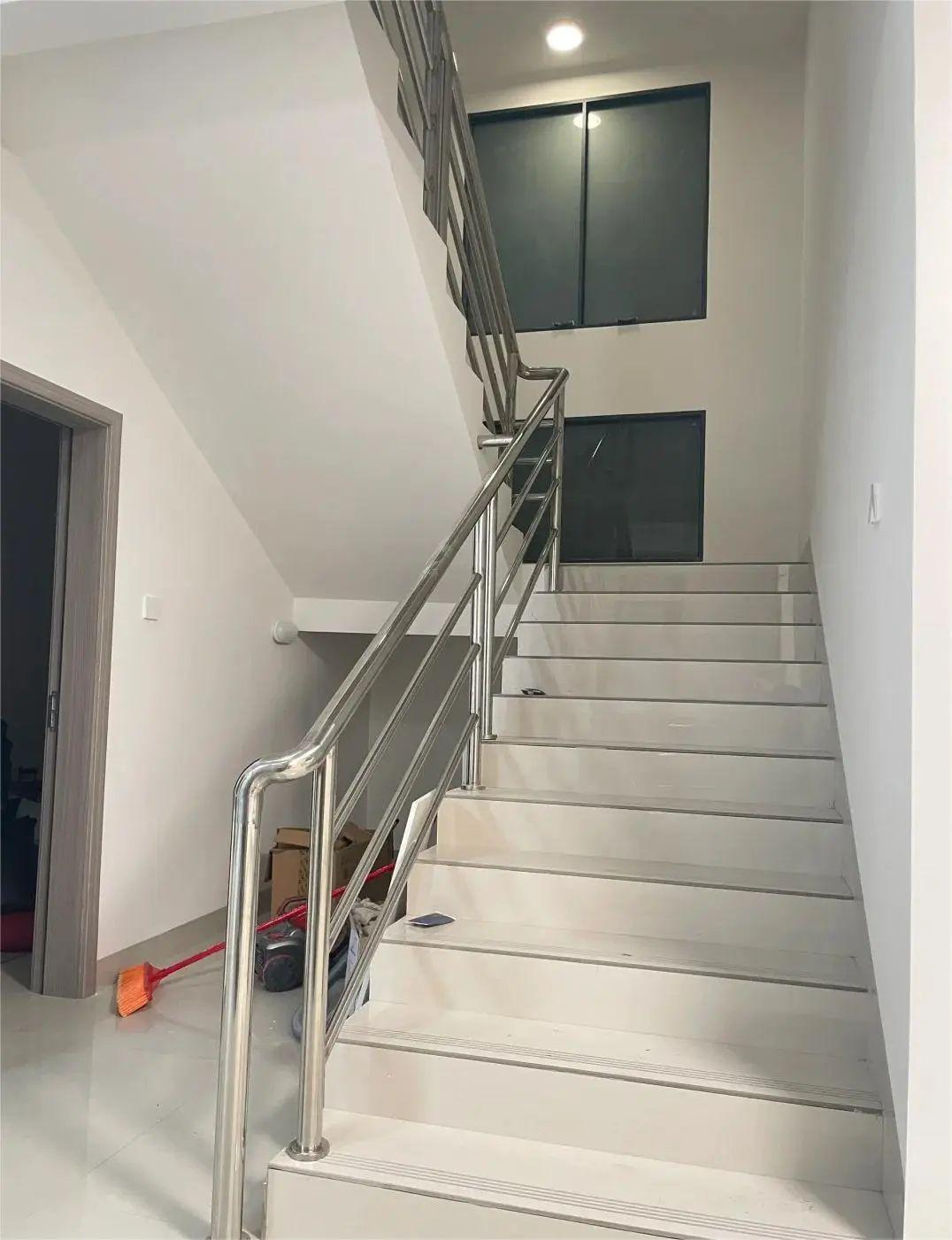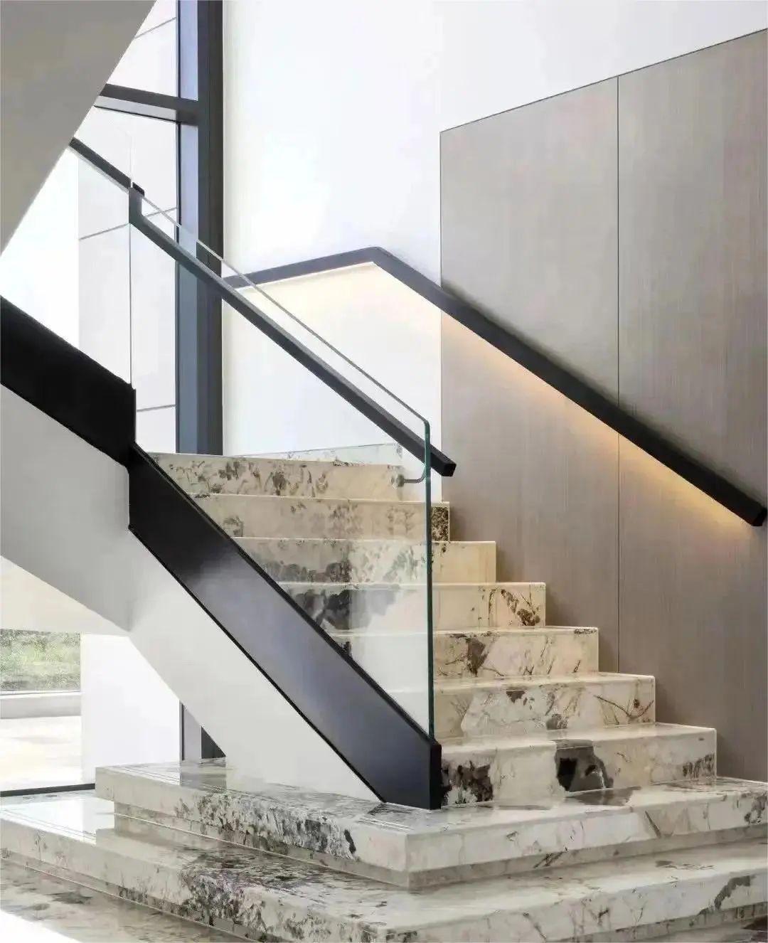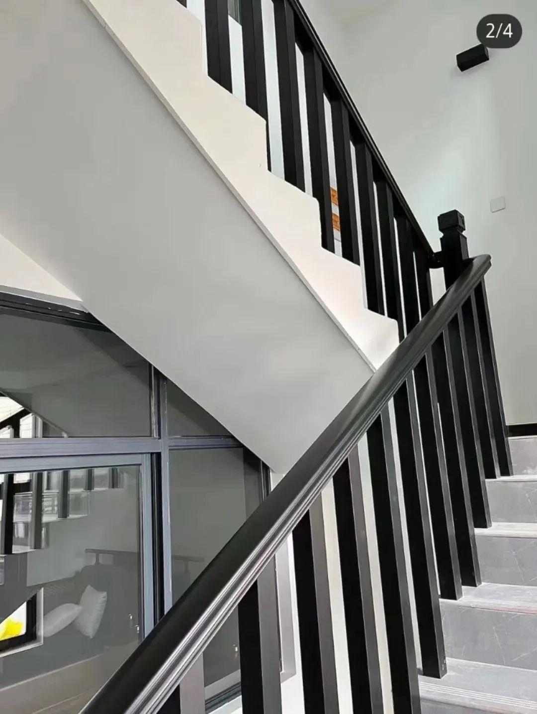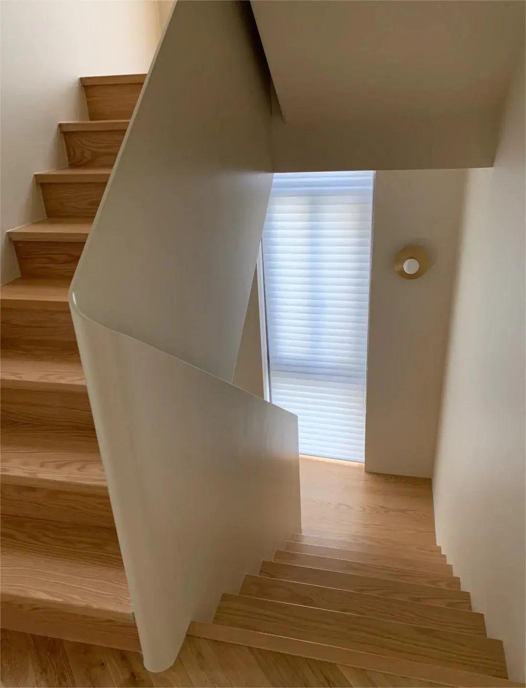 扶手厚度較之其他更薄,造價低,很適合極簡風裝修。內部有鋼龍骨打底,最後石膏板貼面,牢固度沒問題。