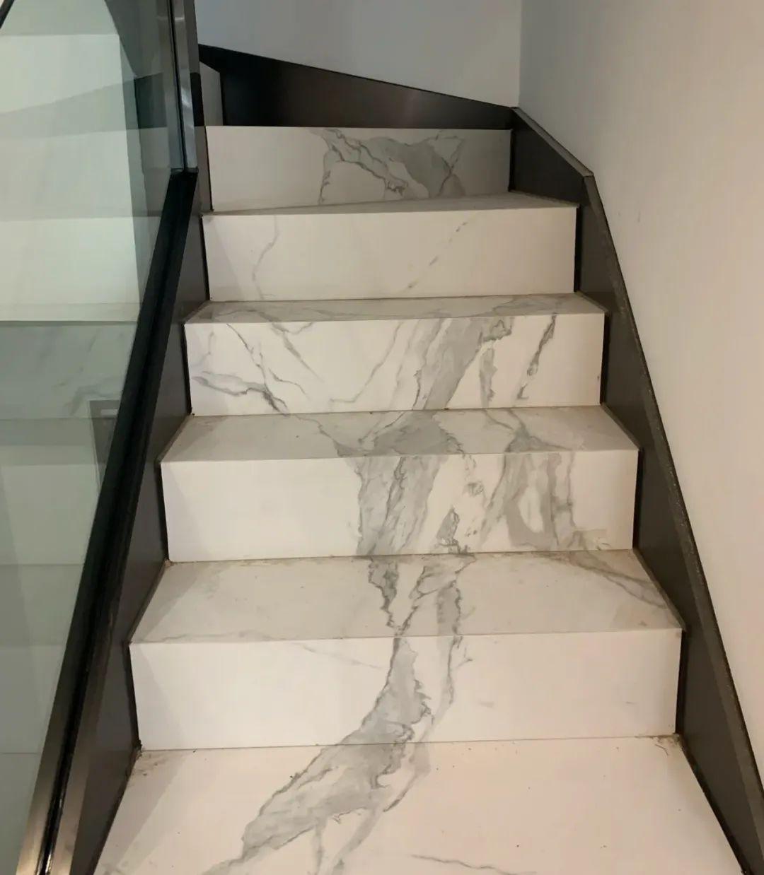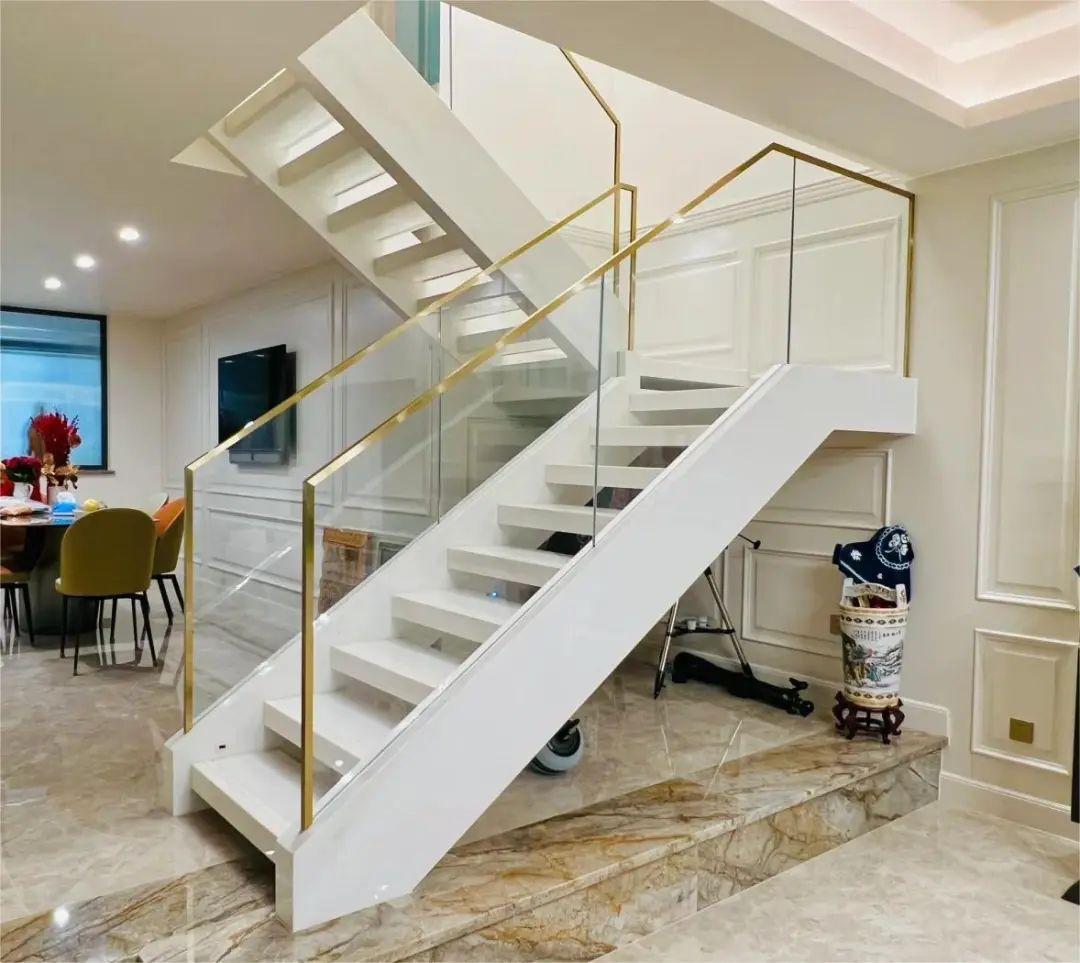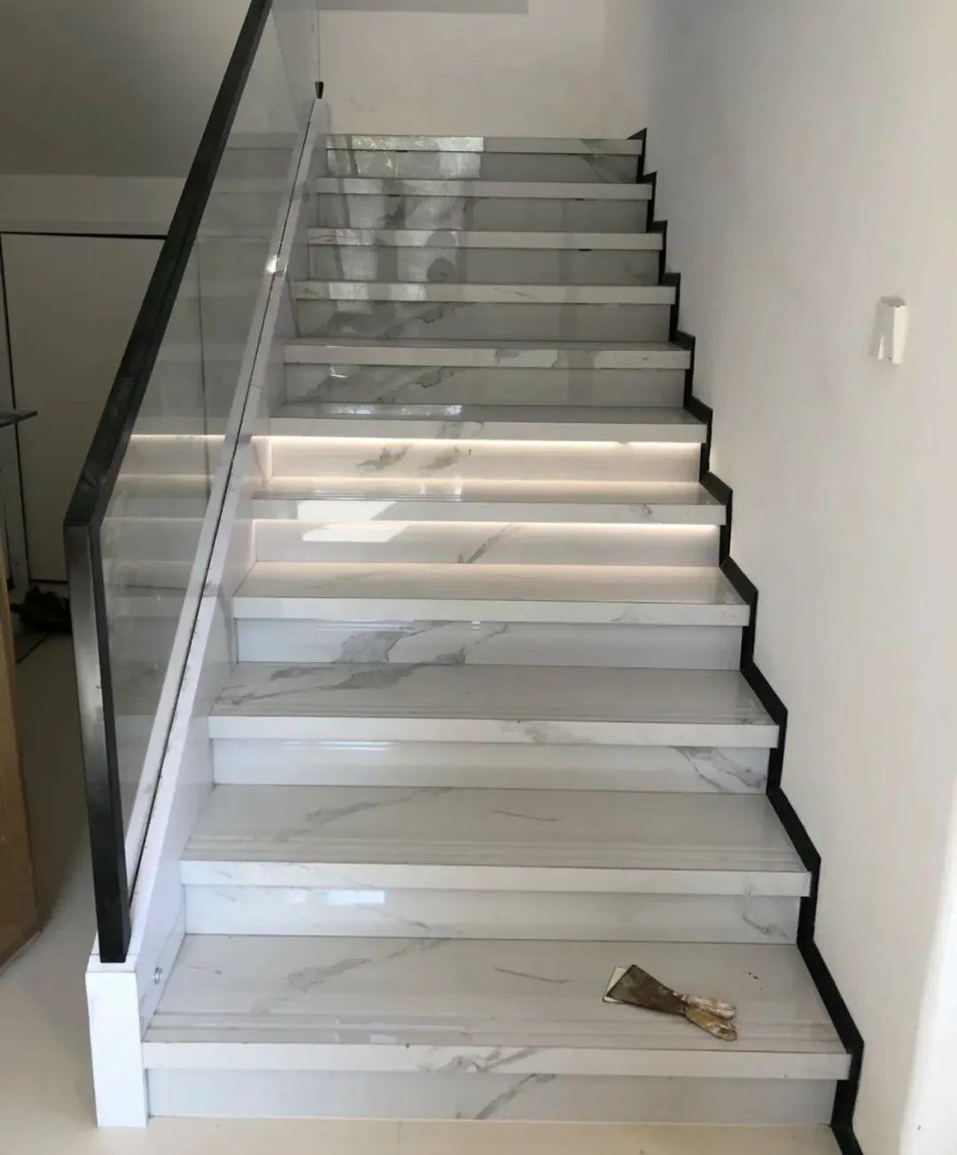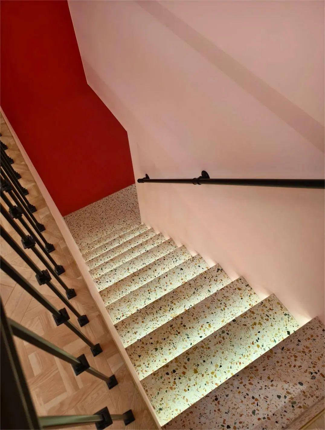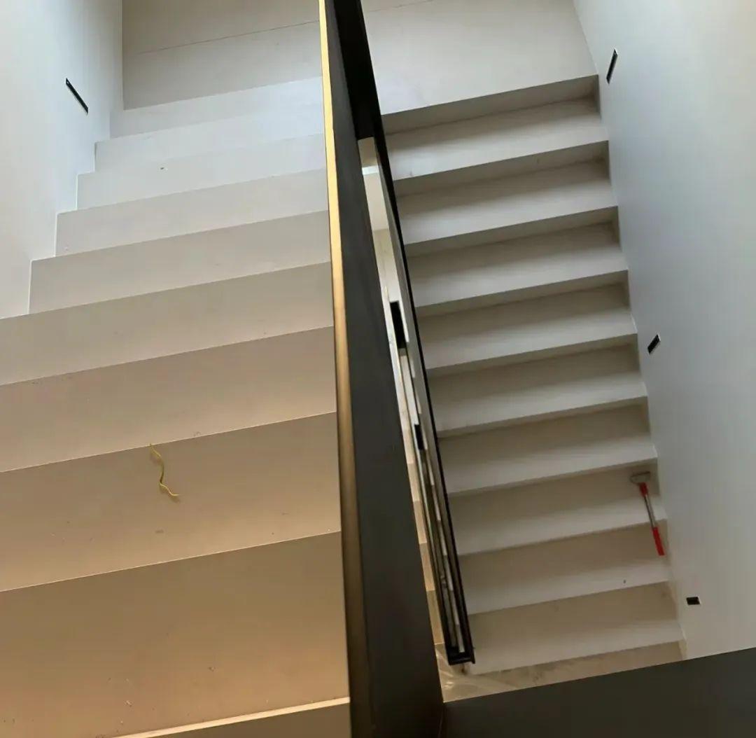 扶手厚度較之其他更薄,造價低,很適合極簡風裝修。內部有鋼龍骨打底,最後石膏板貼面,牢固度沒問題。