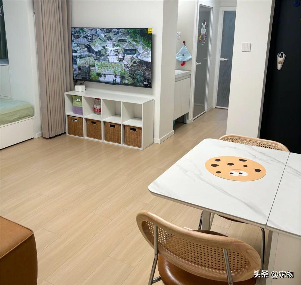 這間38㎡蝸居內的戶型相對簡單,進門處就是家裏的玄關、餐桌和客廳,廚衛和主臥室也樣樣齊全,相對來說較爲方正。