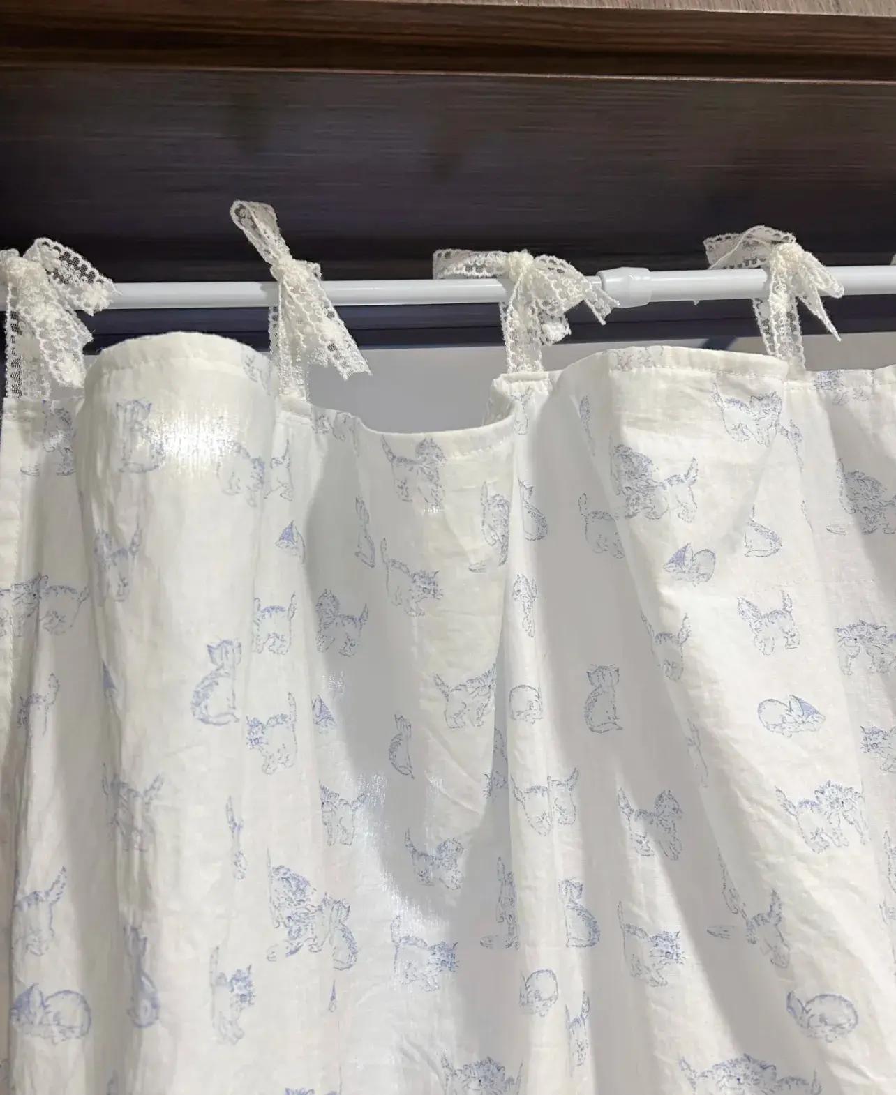 於是,我就買了一些蕾絲綁帶回來,用針線往窗簾上一縫,然後再綁到伸縮杆上。