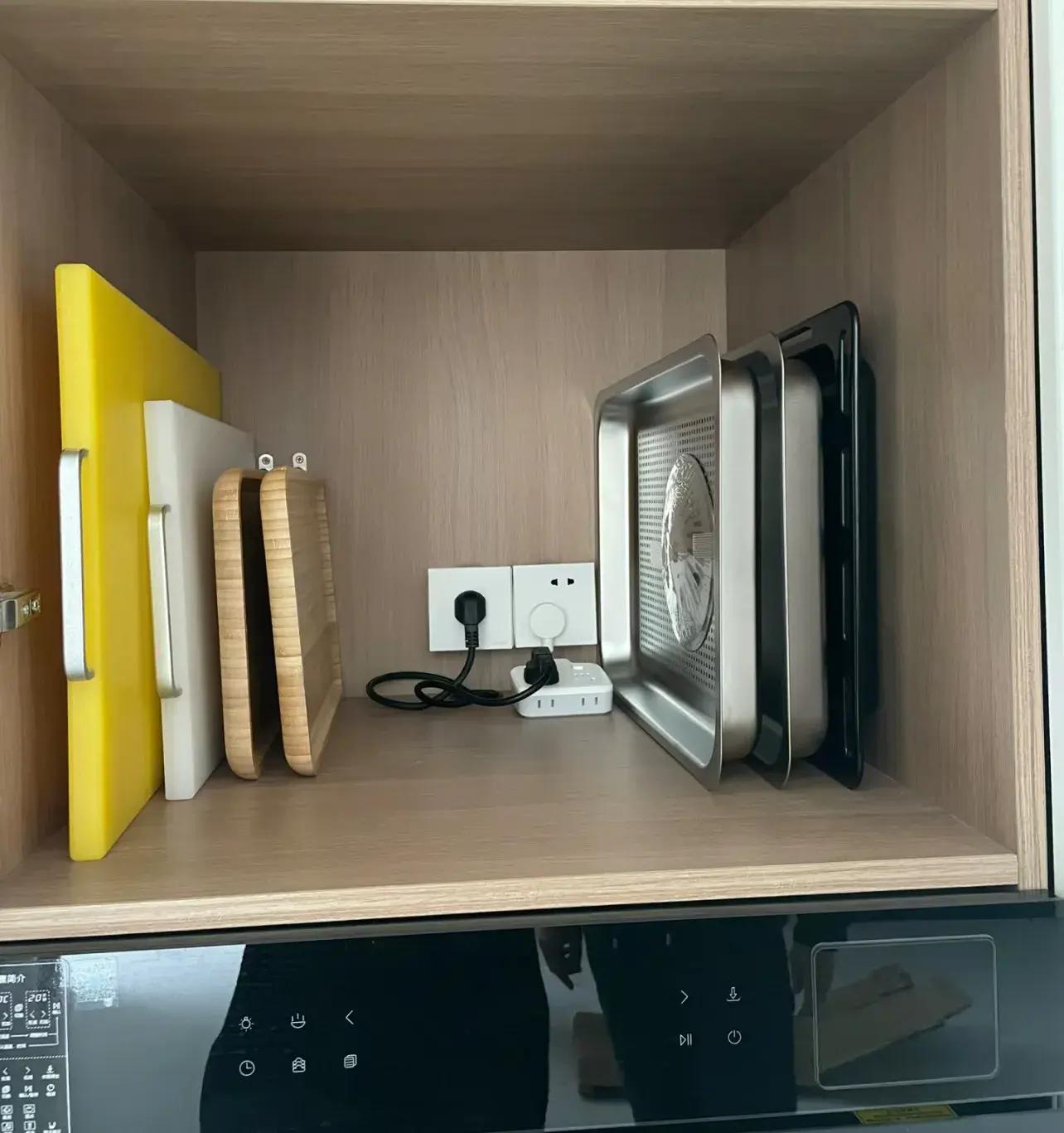 因爲一般這個地方,都會有一些烤盤、砧板……規則的東西需要收納。