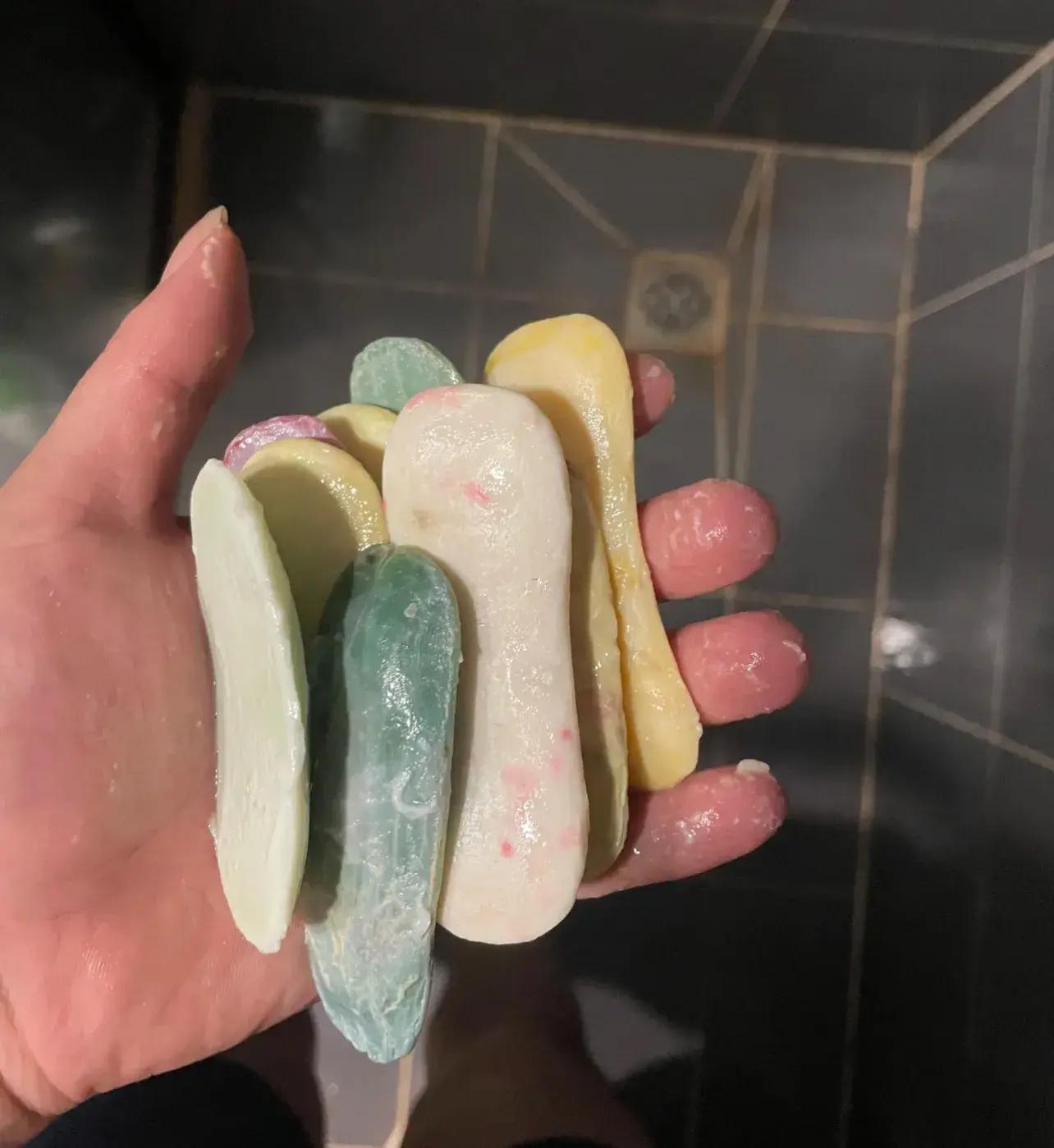 正當我發愁時,我看到了別人用網兜裝肥皂的方法,於是就火速復刻,給這些小塊肥皂安家。