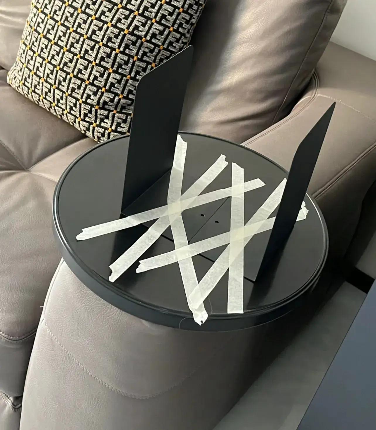 底下兩個L型固定架,是用書立代替的,直接簡單粗暴的用膠帶,給它粘到托盤上即可。