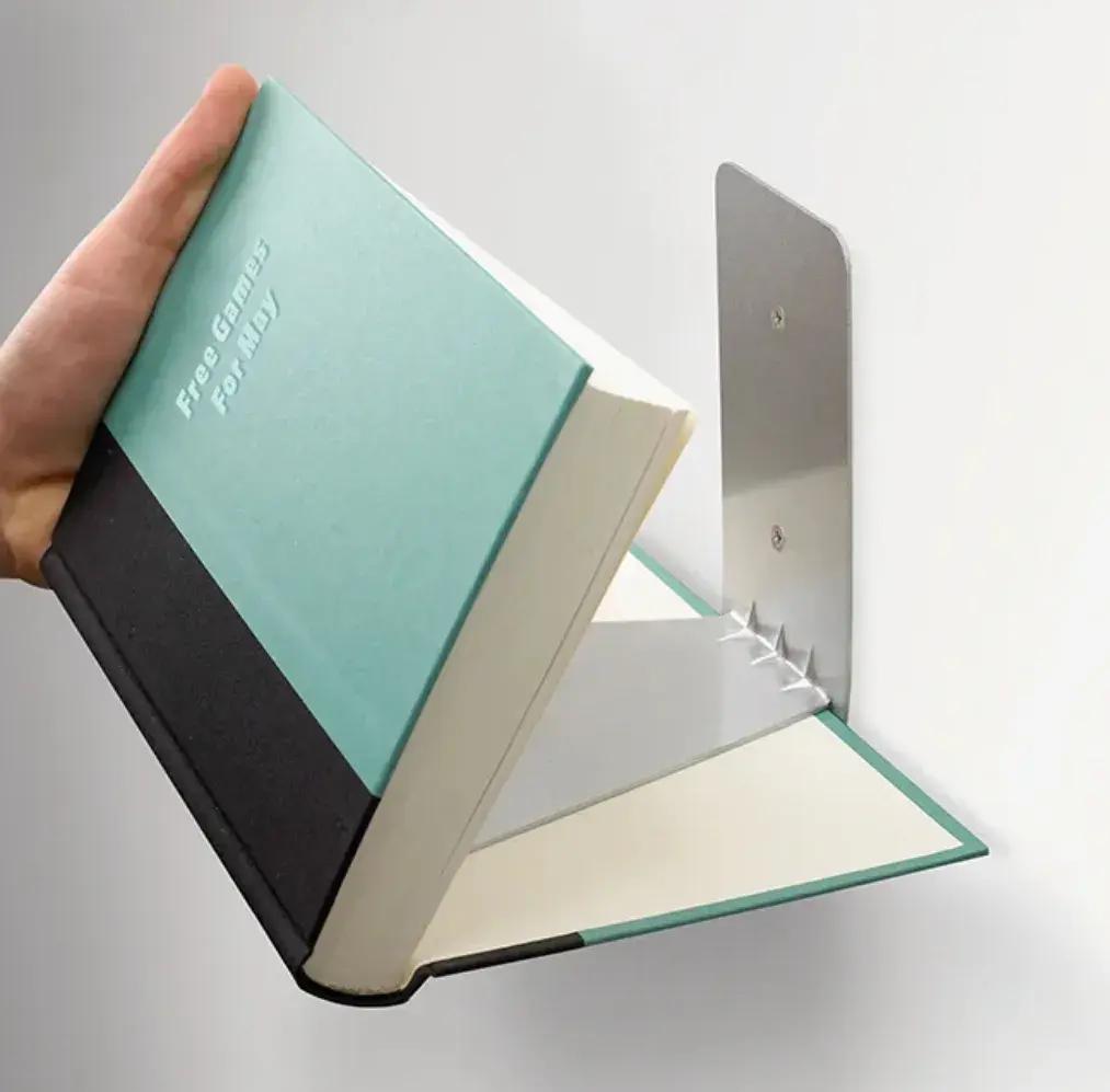 底部還有一個小小的掛鉤,可以用來固定書皮,讓書架做到完全隱形。