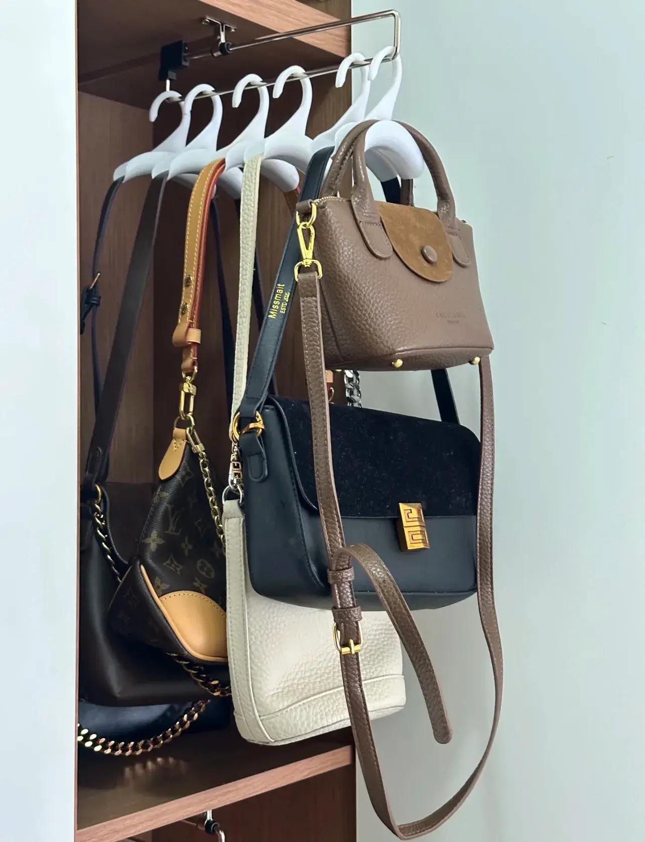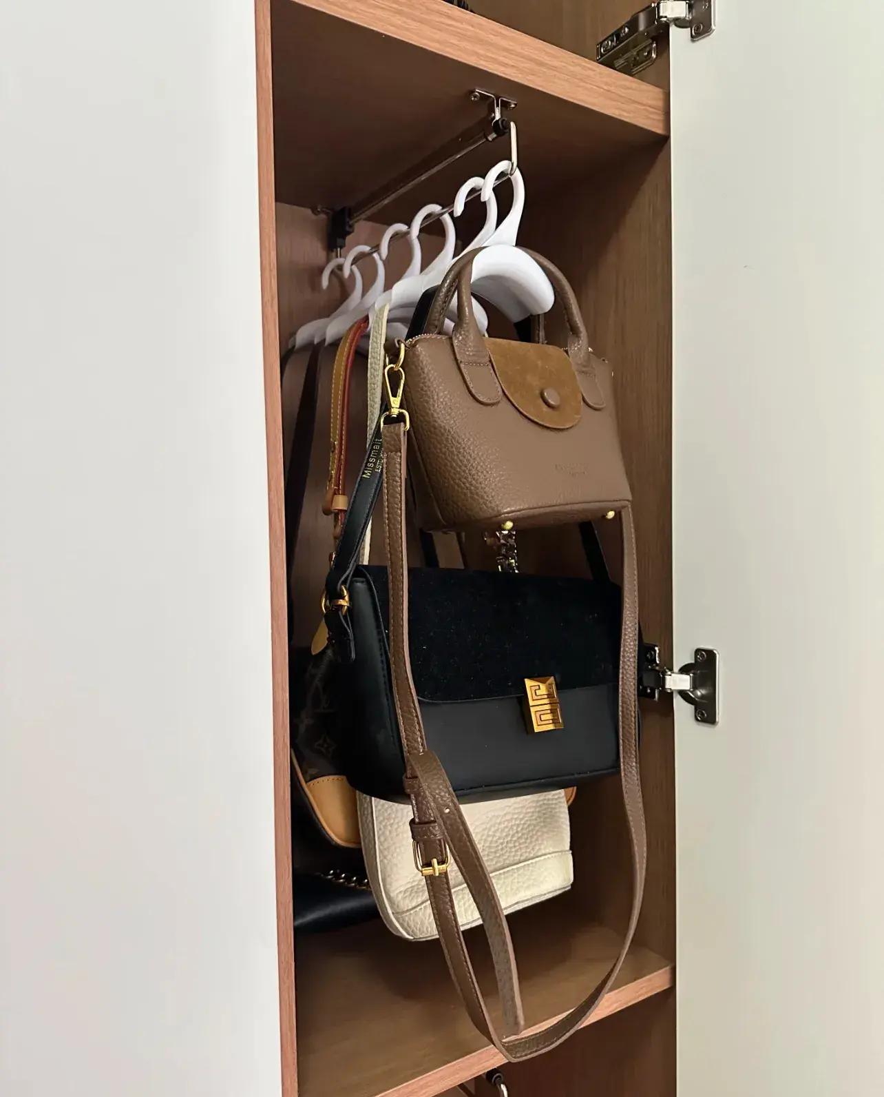 可以讓包包,從橫着掛,變成豎着掛,大大的提升了空間的利用率。