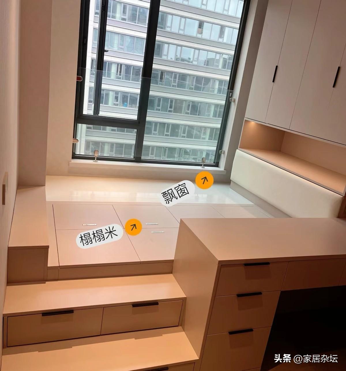 所以,這種榻榻米樣就可以將從飄窗向室內的空間進行延展,飄窗的空間都可以利用起來。