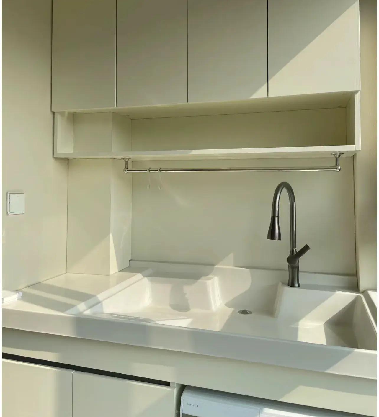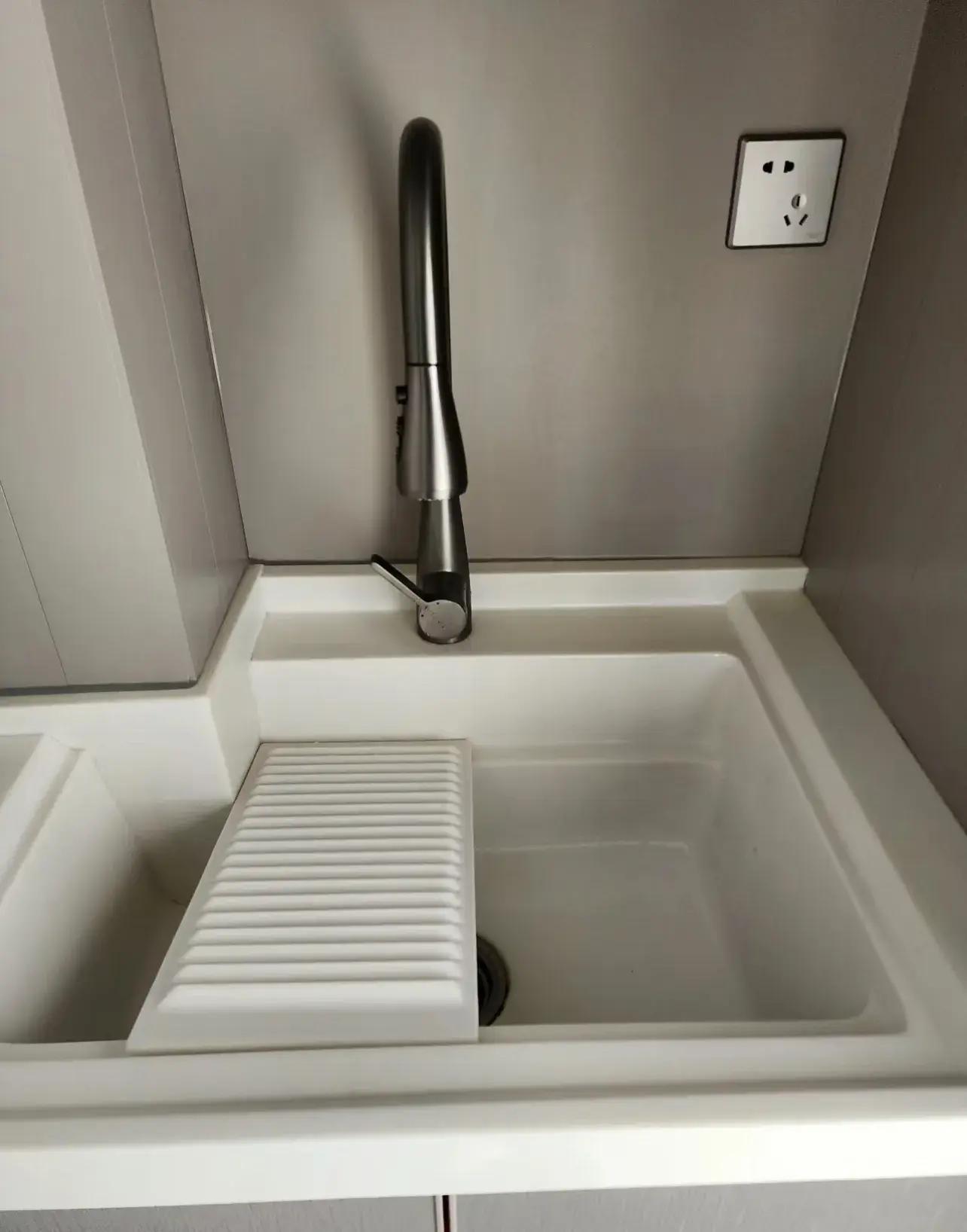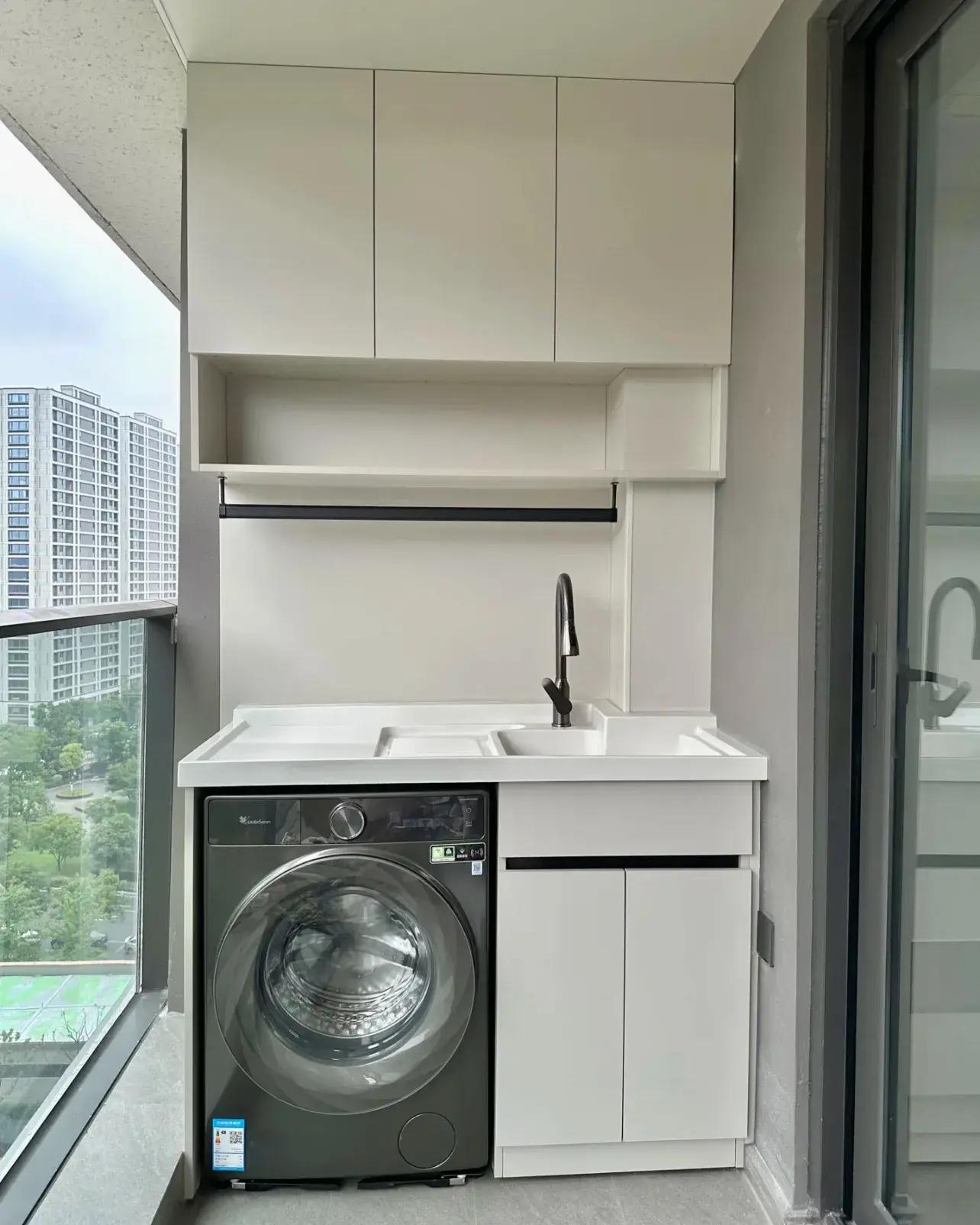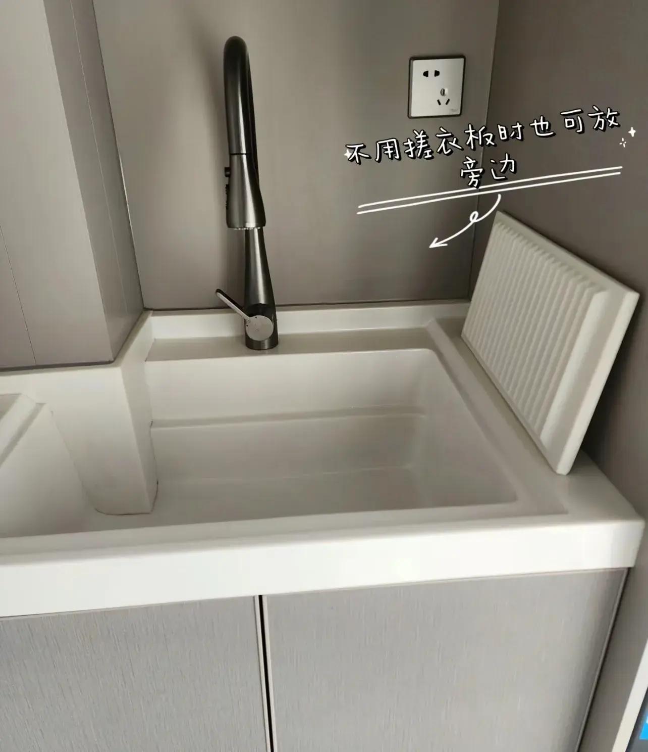 大多數家庭的陽臺寬度,其實都是在洗衣機和洗衣池並排裝的情況下,留不出搓衣板的尺寸的,那這時候該咋辦?一共有5種做法: