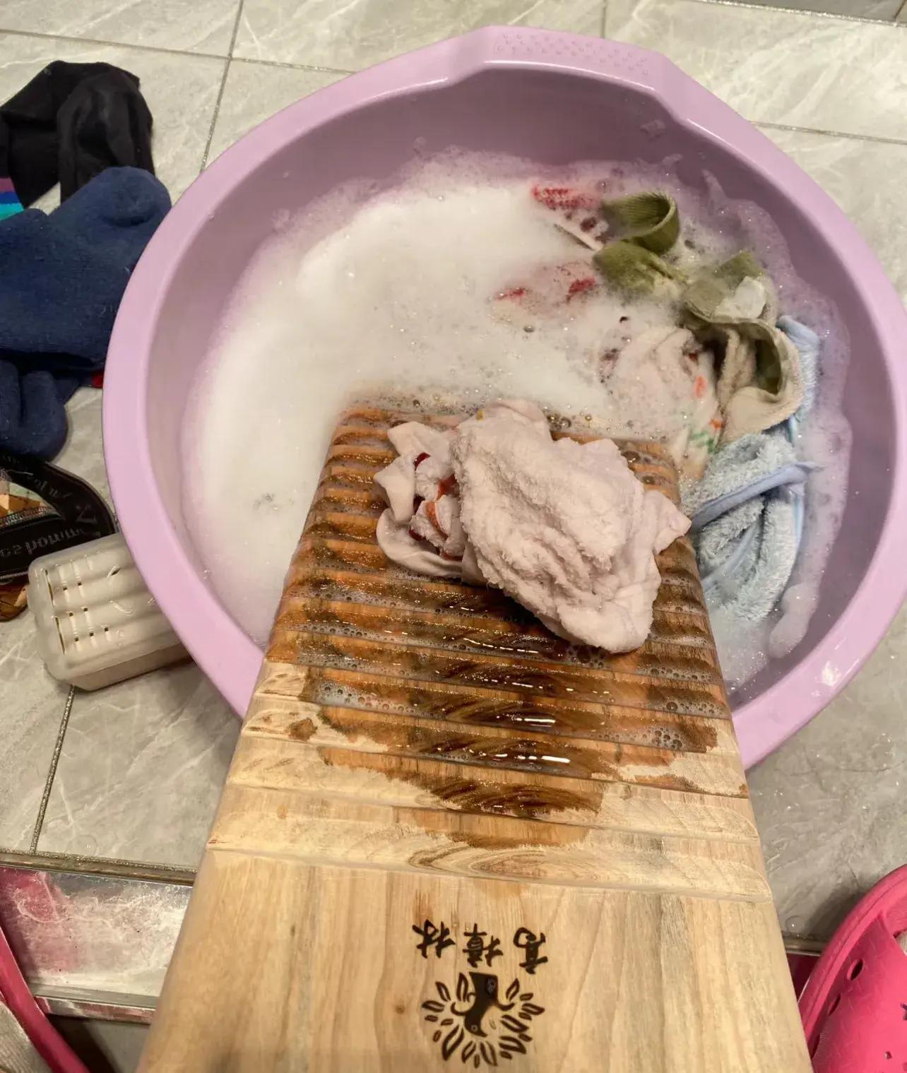 家裏的鞋子、包包、抹布……非常規的衣物,均需要手洗,有個搓衣板,終究是能用得到的。