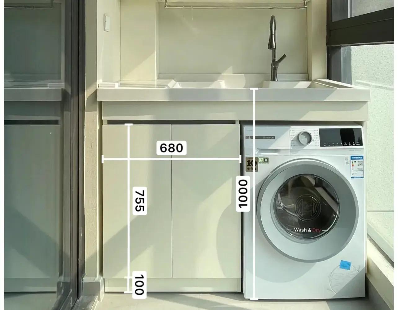 但問題就在於,這洗衣機其實已經夠高了,檯面即使做到1米高,留給臺盆的高度,也就不過10幾釐米高,最終做出來的洗衣池,深度也就10釐米左右。