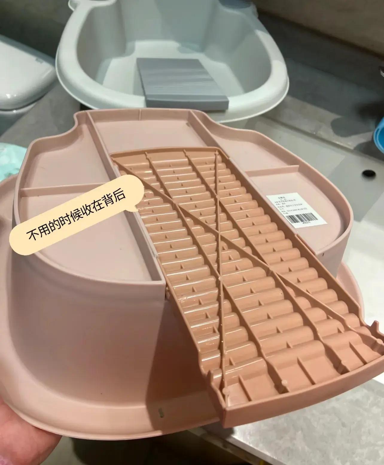 收的時候,就有差別了,盆的底部有一個凹槽,可以把搓衣板收納進去,達到省空間的目的。