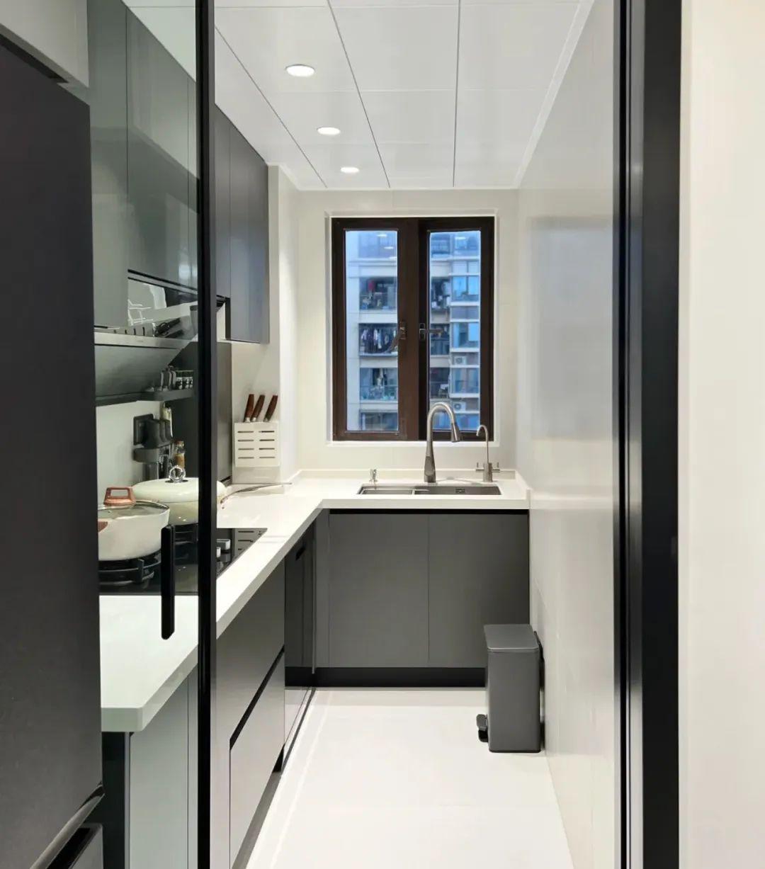 如果你多去幾家參觀裝修,就會發現,大多數小戶型的廚房裝修風格基本固定,淺色系吊櫃和櫥櫃,配極簡風門板和把手。