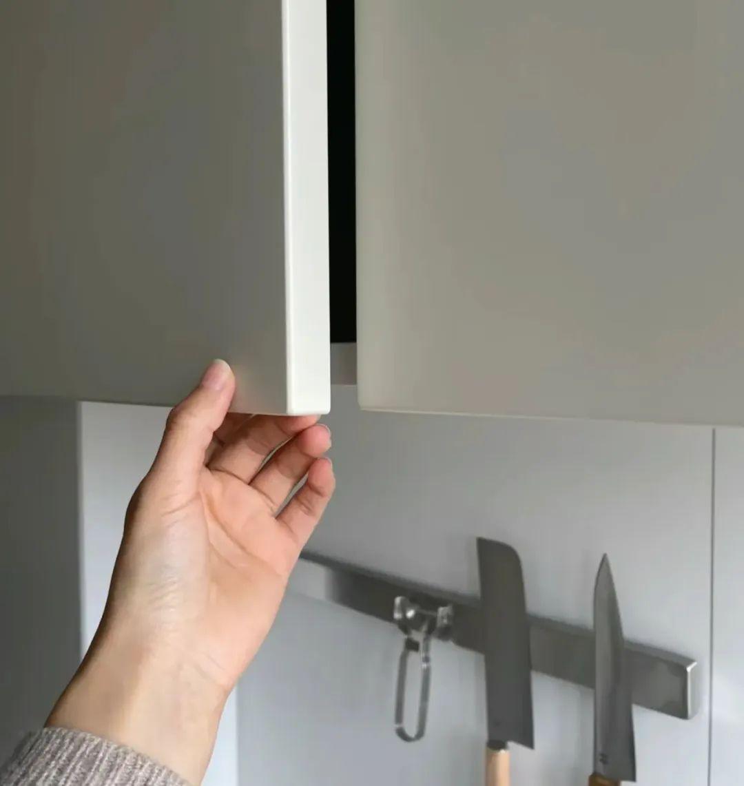 而且,門板上儘量不做外凸的拉手,因爲拉手和門板之間必然會有的縫隙,產生衛生死角,下延式的櫃門拉手更優。