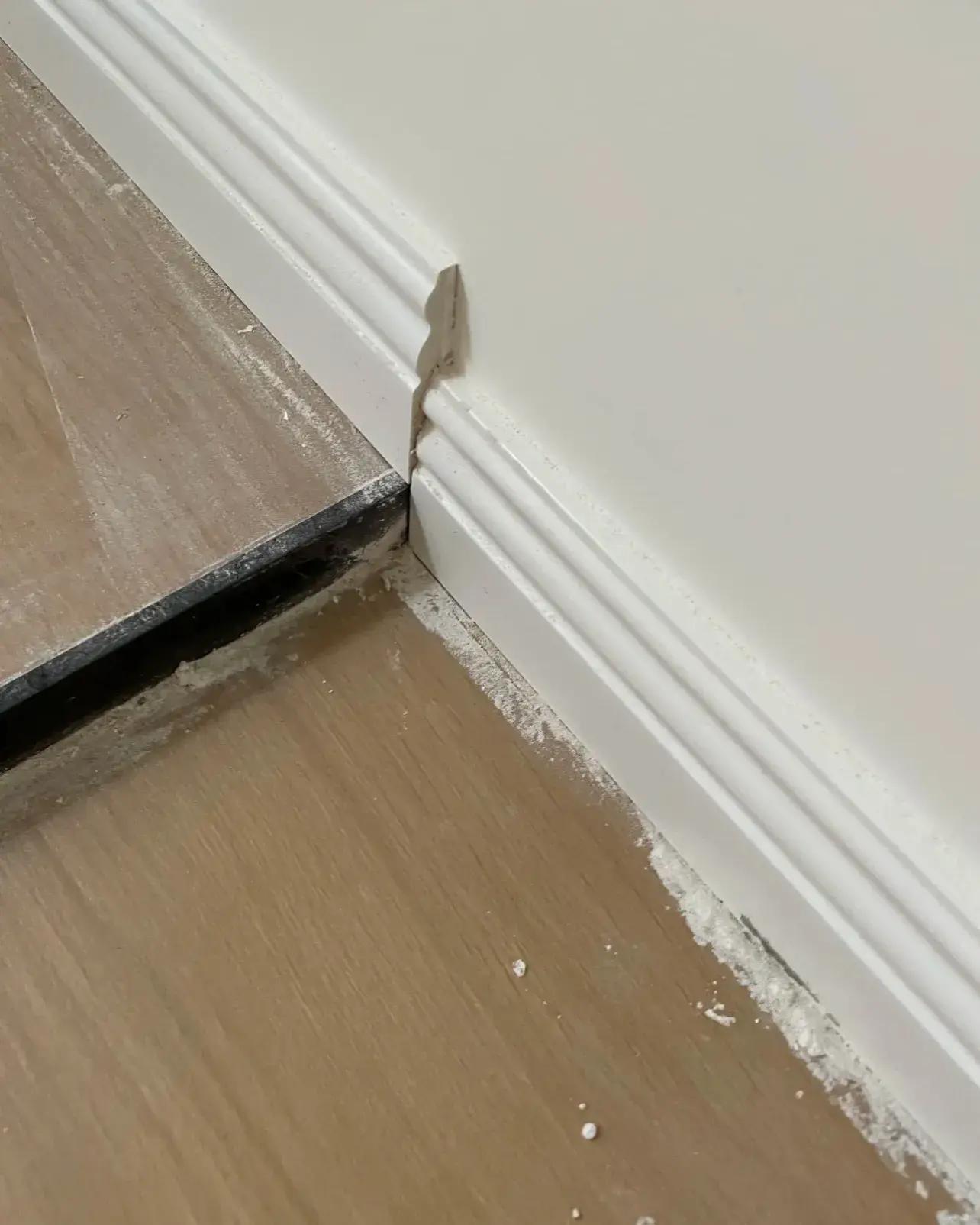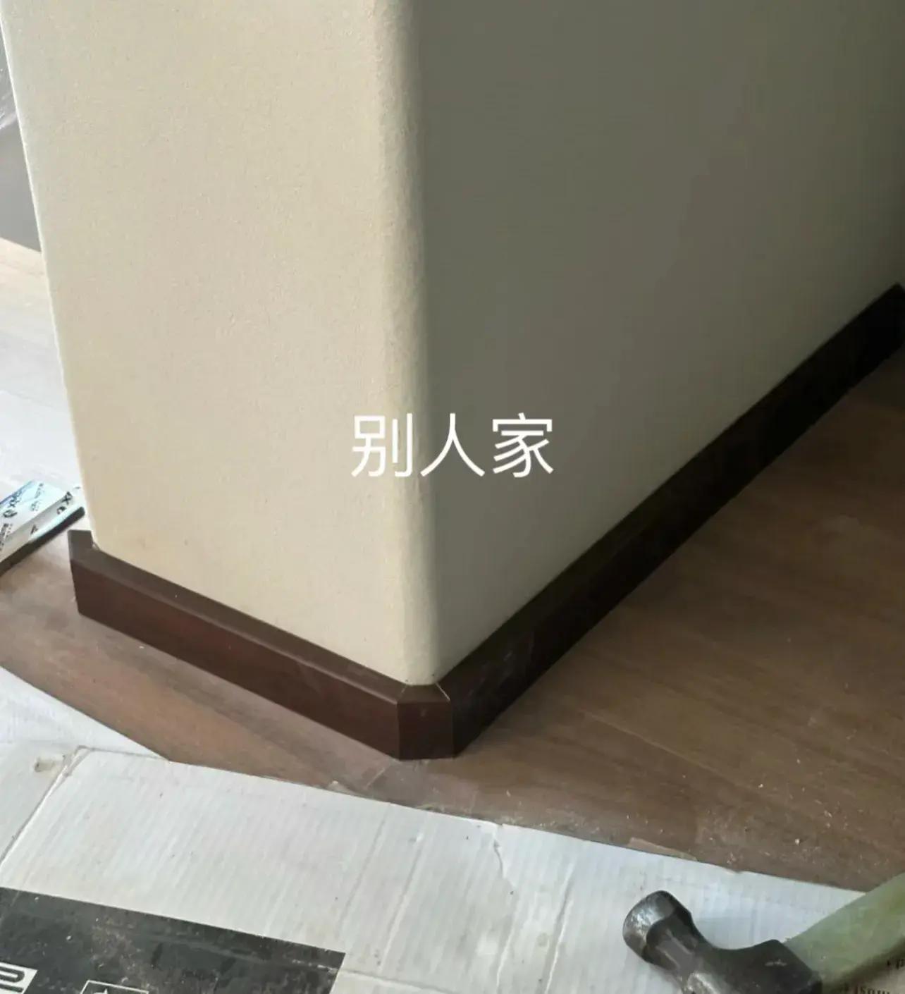 不想動心思,不愛學習、很菜的安裝工,就會直接給你裝出來這種錯軌的踢腳線,這強迫症看了不得瘋啊!