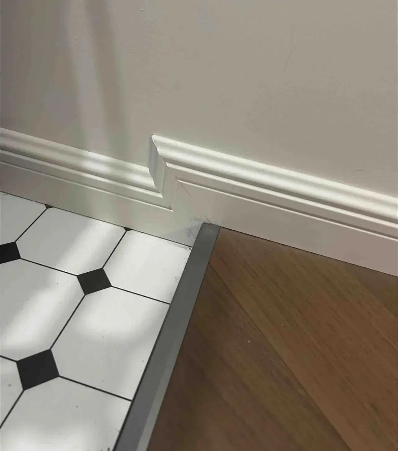 裝這踢腳線的工人,一定是個大直男,見不得一點彎?