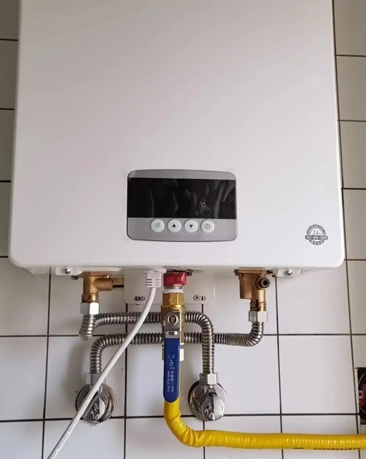 燃氣熱水器下面的軟管,本身就夠亂了,還不夠,還要玩抽象,直腿給人裝成交叉腿。