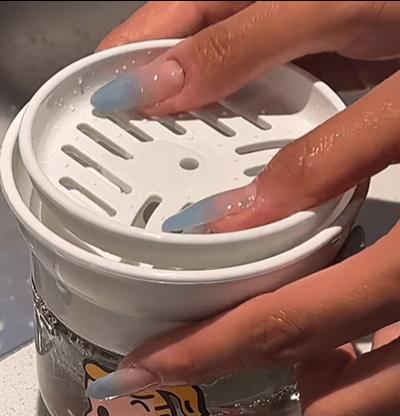 不用時,洗碗棉放在上面,上面的蓋子就是洗碗棉收納盤,疏鬆的瀝水孔,能確保洗碗棉及時通風晾乾。