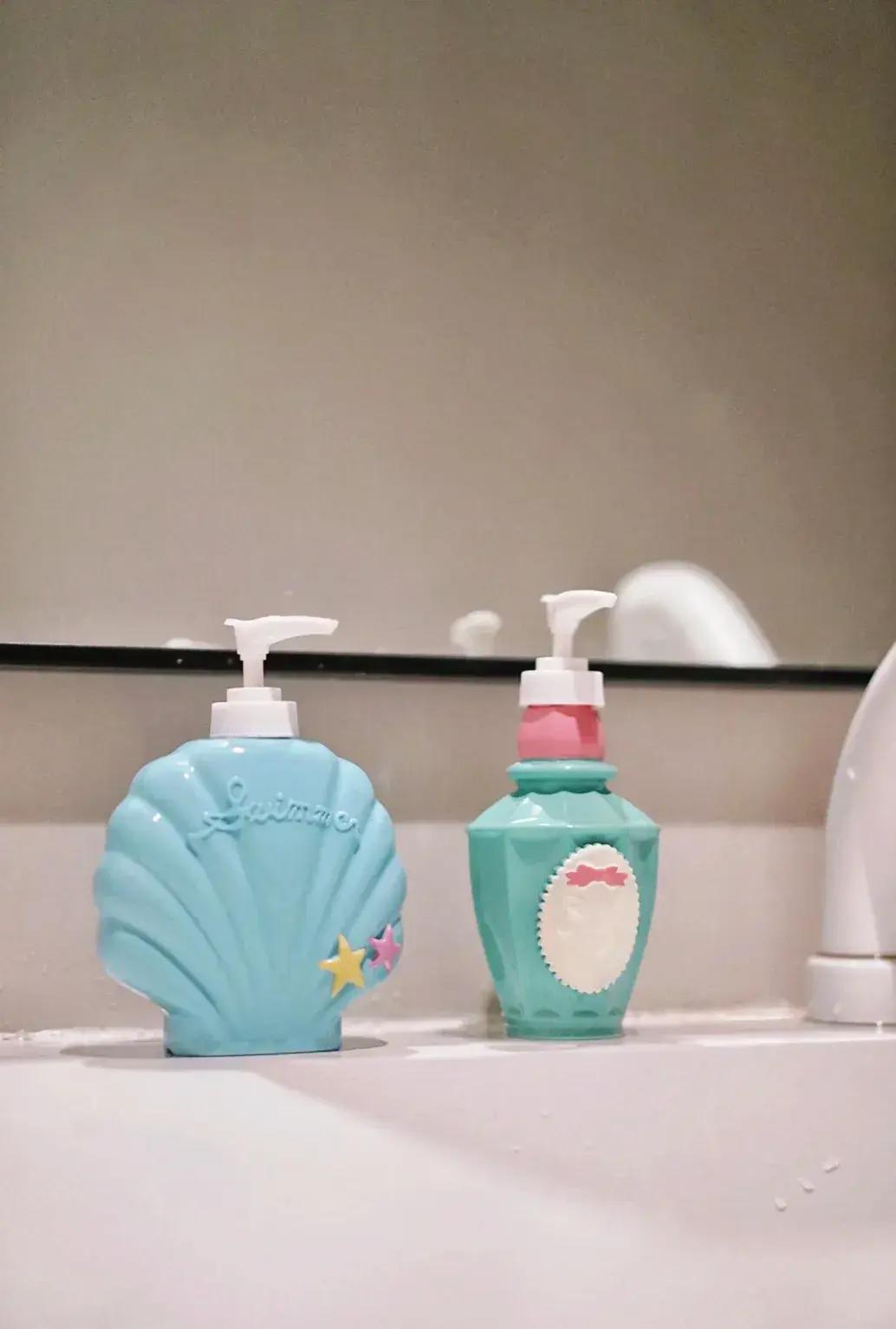 比如這個洗手液分裝瓶,放在洗手檯上,滿滿的公主風,每次洗手,好像也會配合這些配套做作,內心世界豐富到無以言表。
