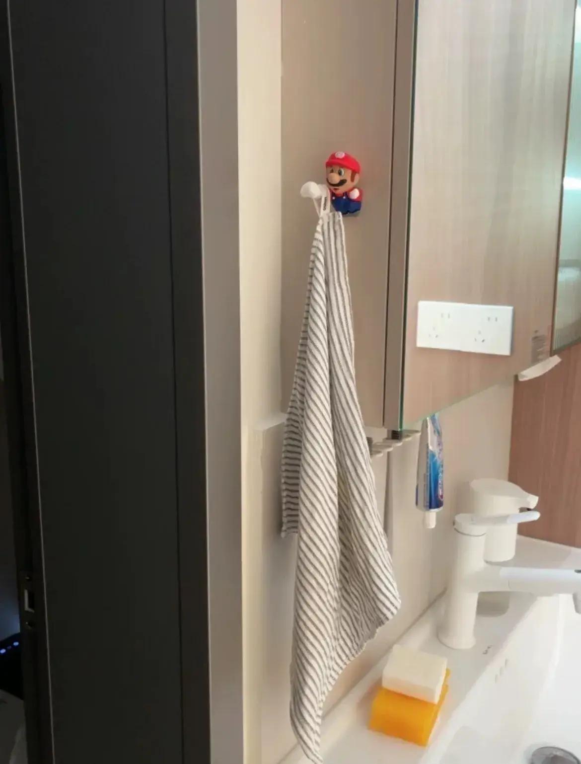 而好看的掛鉤,自帶裝點作用,這個馬里奧掛鉤,就是我一眼看中顏值買回來的。