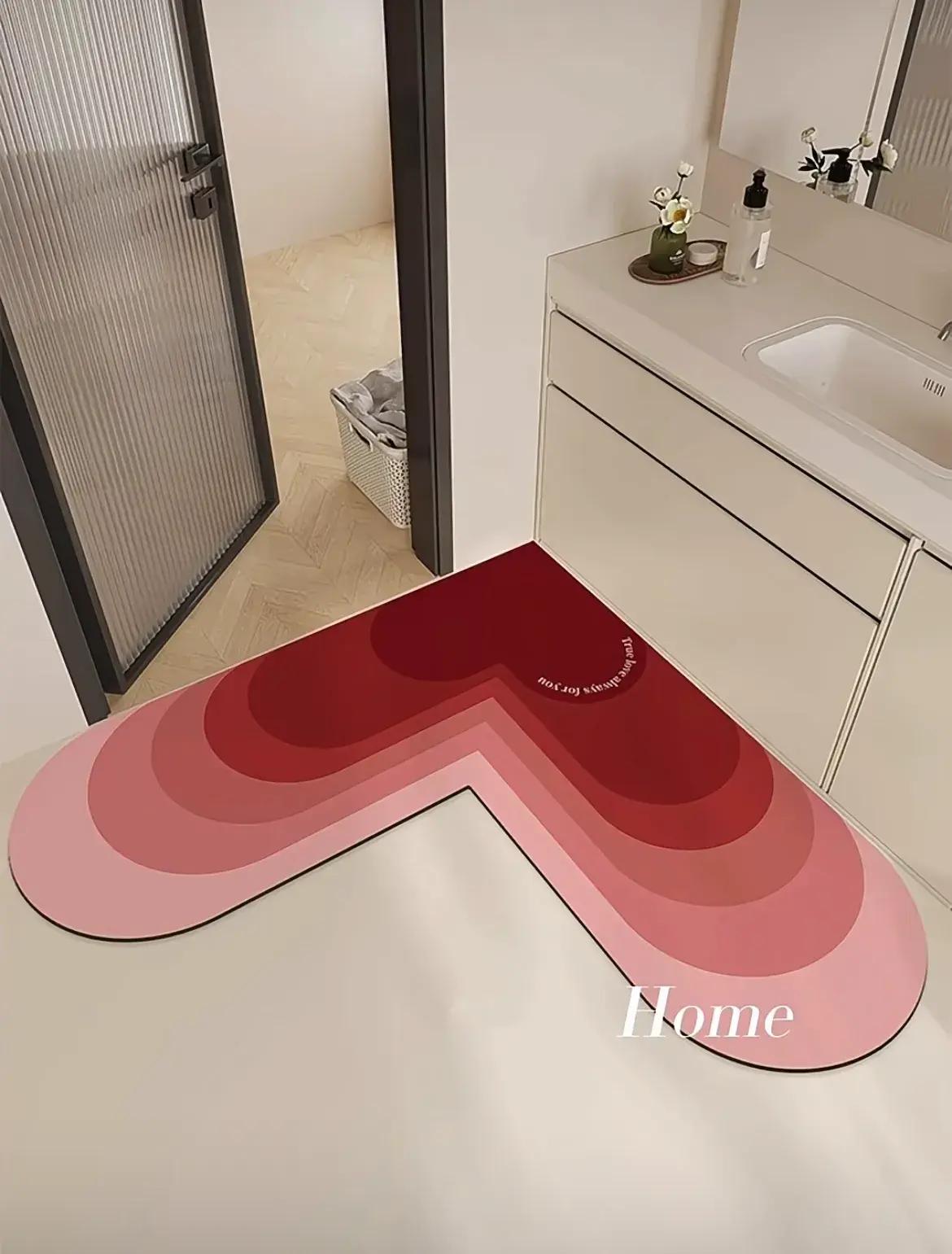 這個衛生間地墊,買它的原因一方面是因爲顏值高,由淺及深的桃心形狀,每一次看見都會怦然心動;