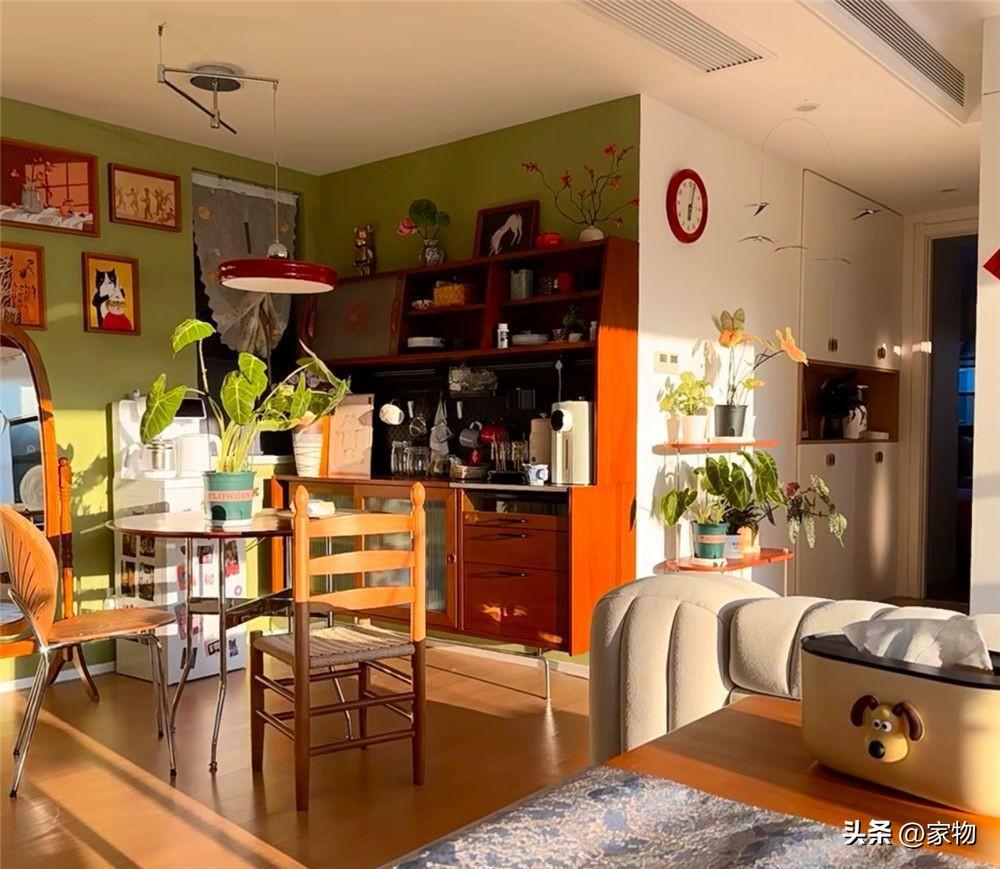 家裏的餐廳空間,真的是亂中有序,餐廳內的東西相對多一些,但都經過了整理,呈現出一種亂中有序的感覺,陽臺6米的大窗,光線能直接照到餐廳裏,覆上一層暖色。