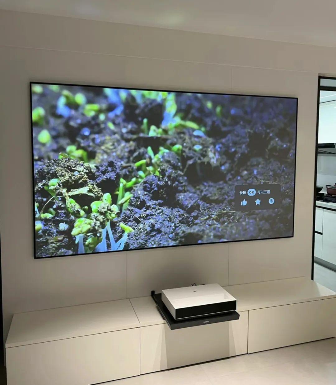 投影幕布有人會選擇硬屏,類似傳統電視的外觀,但是更薄,但問題是硬屏不能摺疊,價格也超級高。