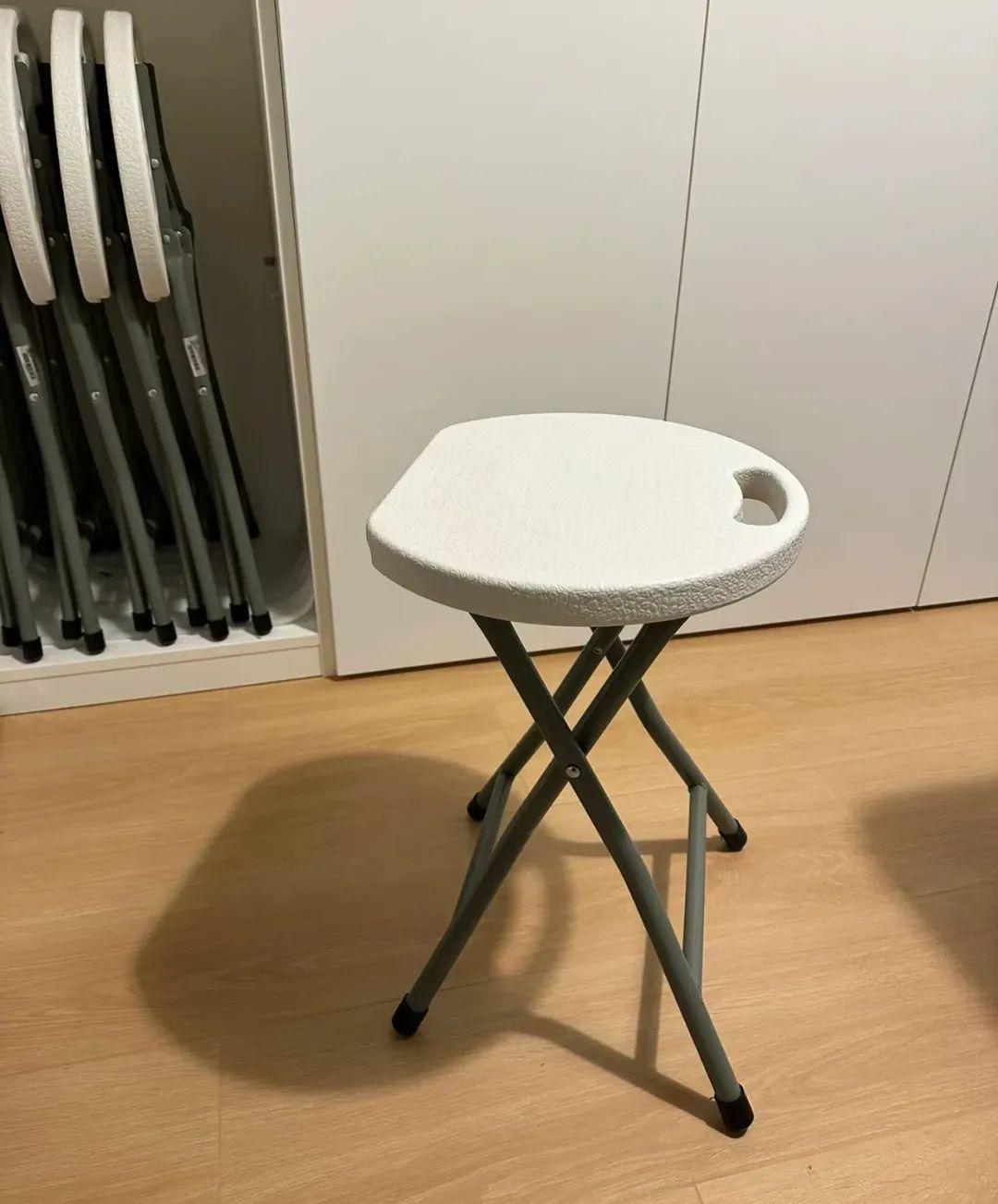凳子的材質結實耐用,做工也好,摺疊很順暢。白色簡約款,顏值高,承重強,180斤的人坐着都很穩!