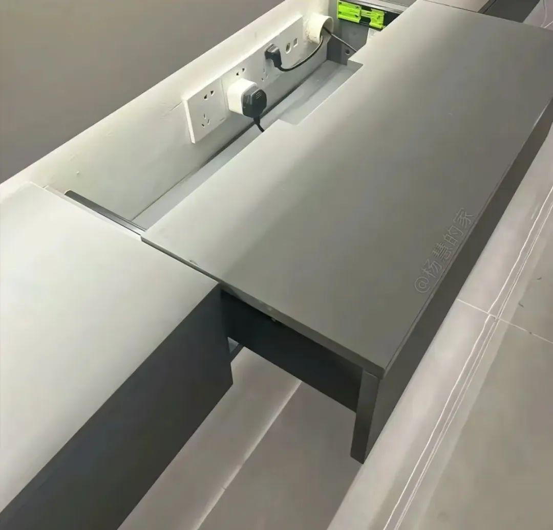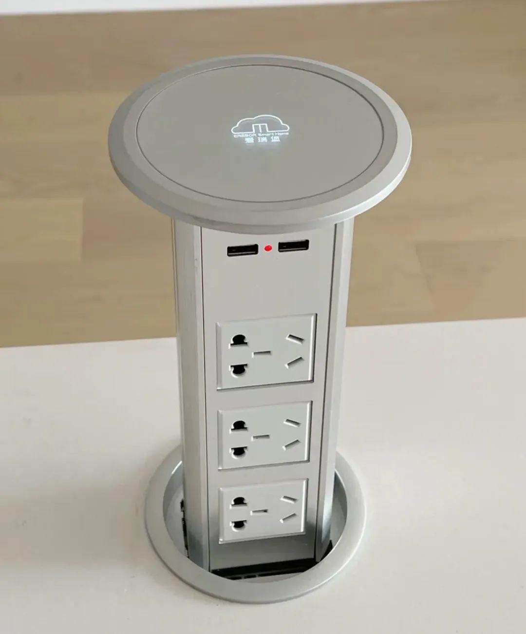 在使用電源時,一鍵升降,而平時它跟檯面平齊,基本隱形,也不影響日常檯面的使用。