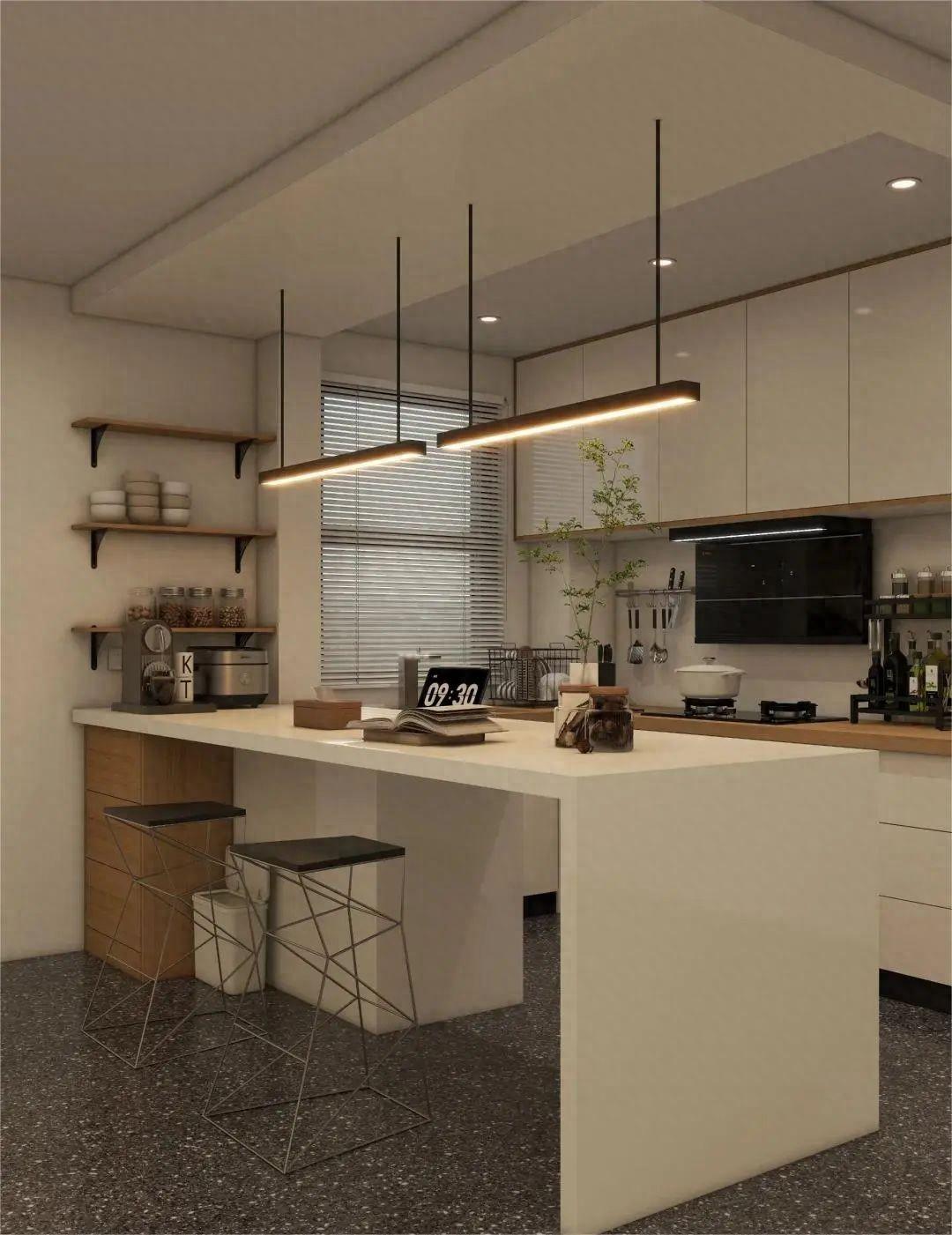 一體化帶升降功能的變形島臺餐桌,售價會比普通島臺高上不少。推薦更具性價比的方案,做成分體式的島臺和餐桌,只需要給餐桌換一個升降桌腿就行。