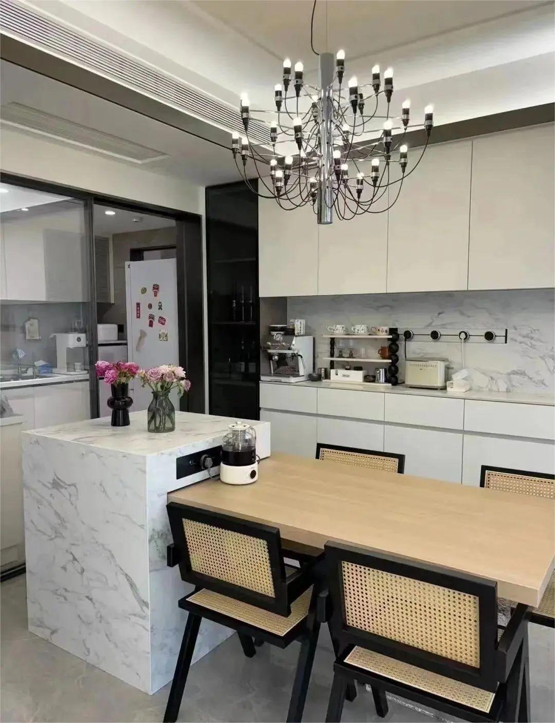 開放式廚房,搭配一體式餐桌島臺,是當下年輕人一種流行做法,餐廚一體的設計,充分利用了空間,對小戶型非常友好。