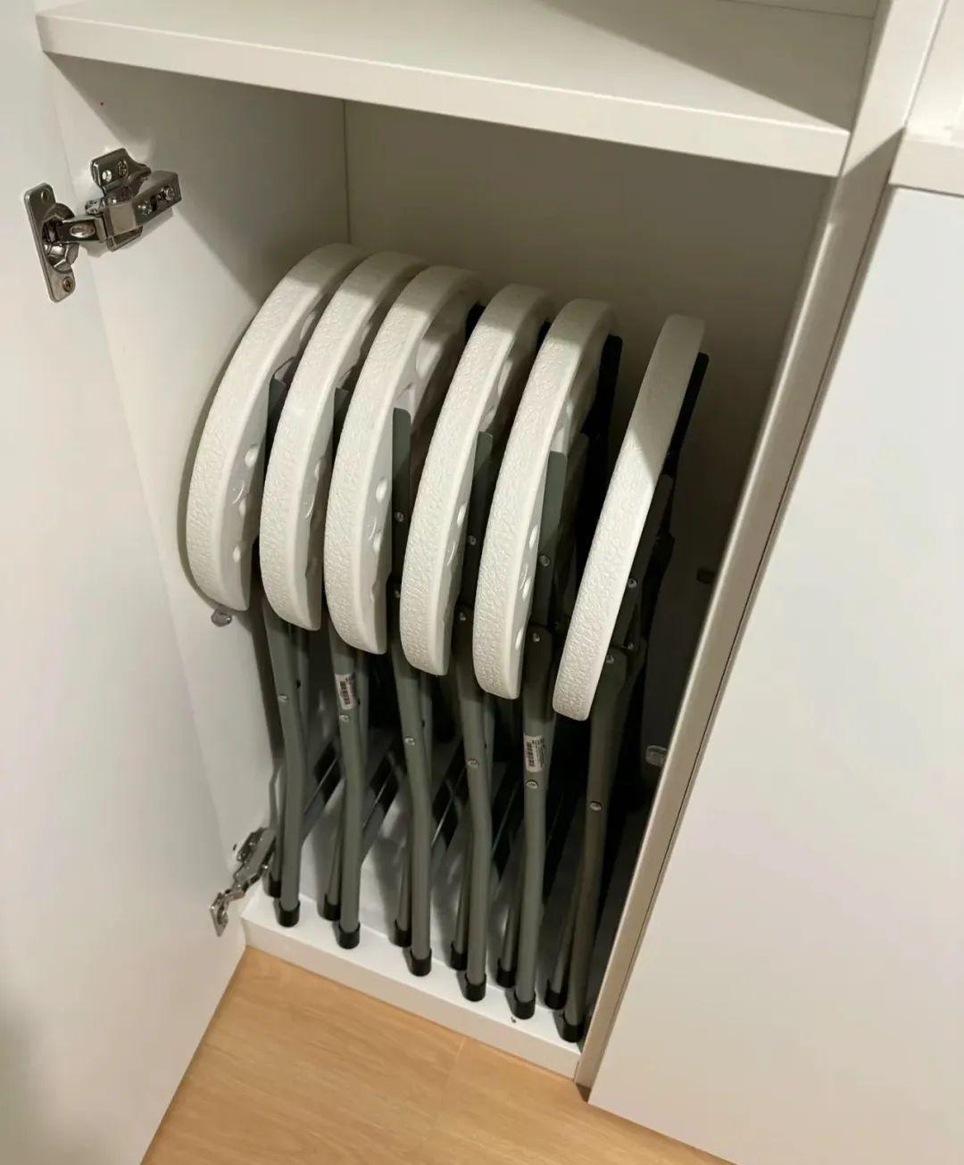 家裏不想買那麼多餐椅,但是又怕偶爾來人沒椅子坐的話,我們可以備一些摺疊餐椅。